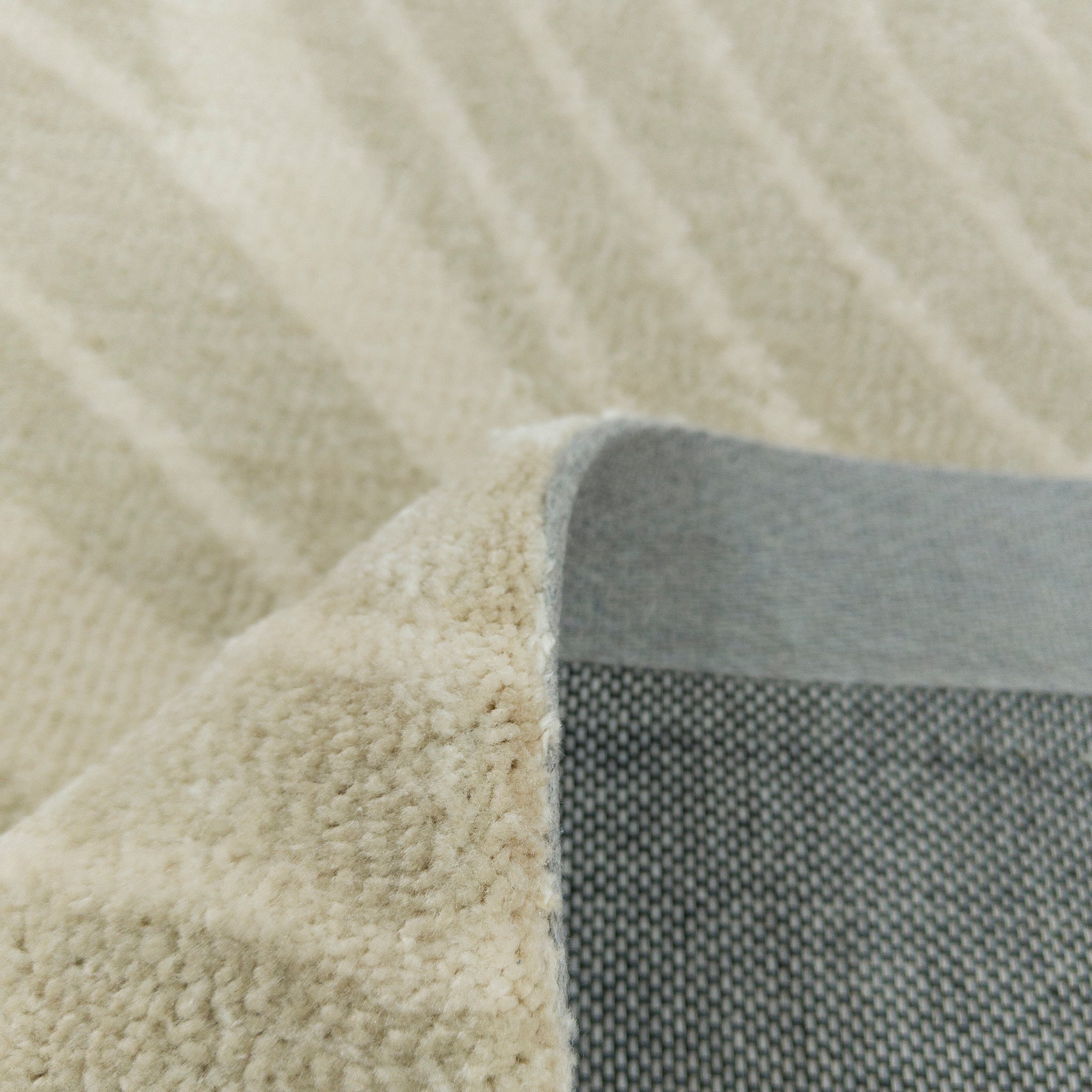 • سجادة مستطيلة باللون البيج تمنح مظهرًا هادئًا ومحايدًا