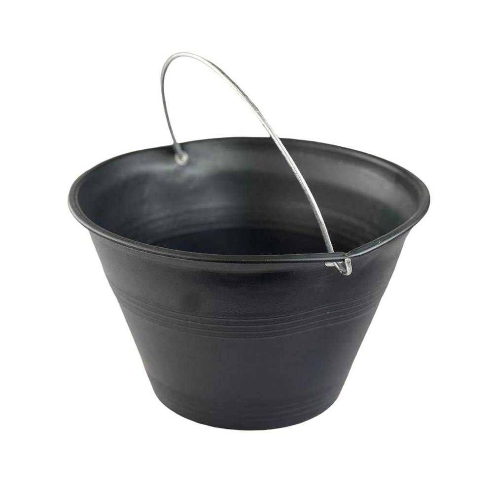 سطل كبير عملي ومتين مناسب للاستخدامات المختلفة في الورش والمواقع والمنازل. مصنوع من بلاستيك مقوّى باللون الأسود ومزوَّد بحامل معدني فضي مثبت بقوة لتسهيل الحمل والنقل.