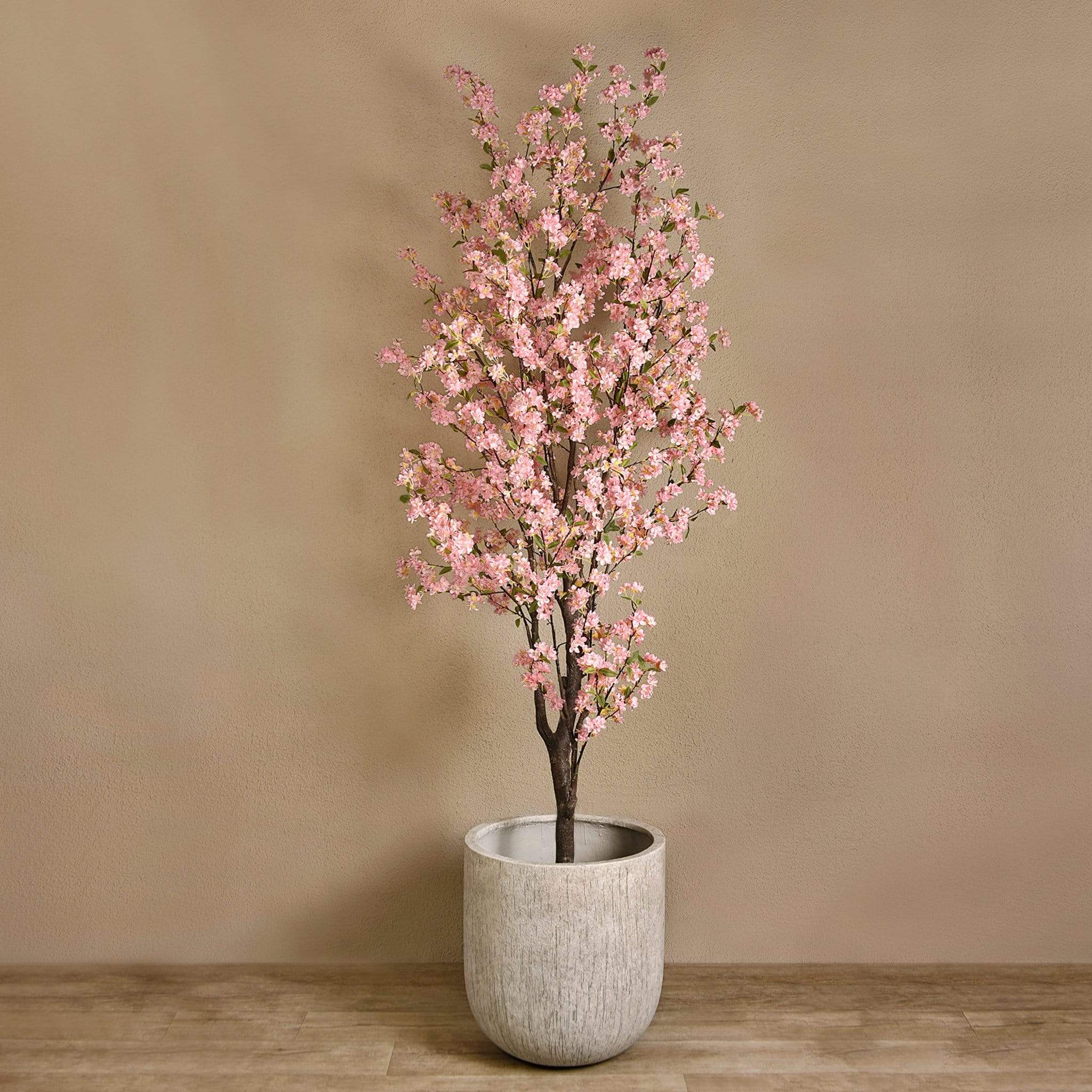 - شجرة كرز مزهرة صناعية مثبتة داخل أصيص بلاستيكي أسود (للشحن فقط).