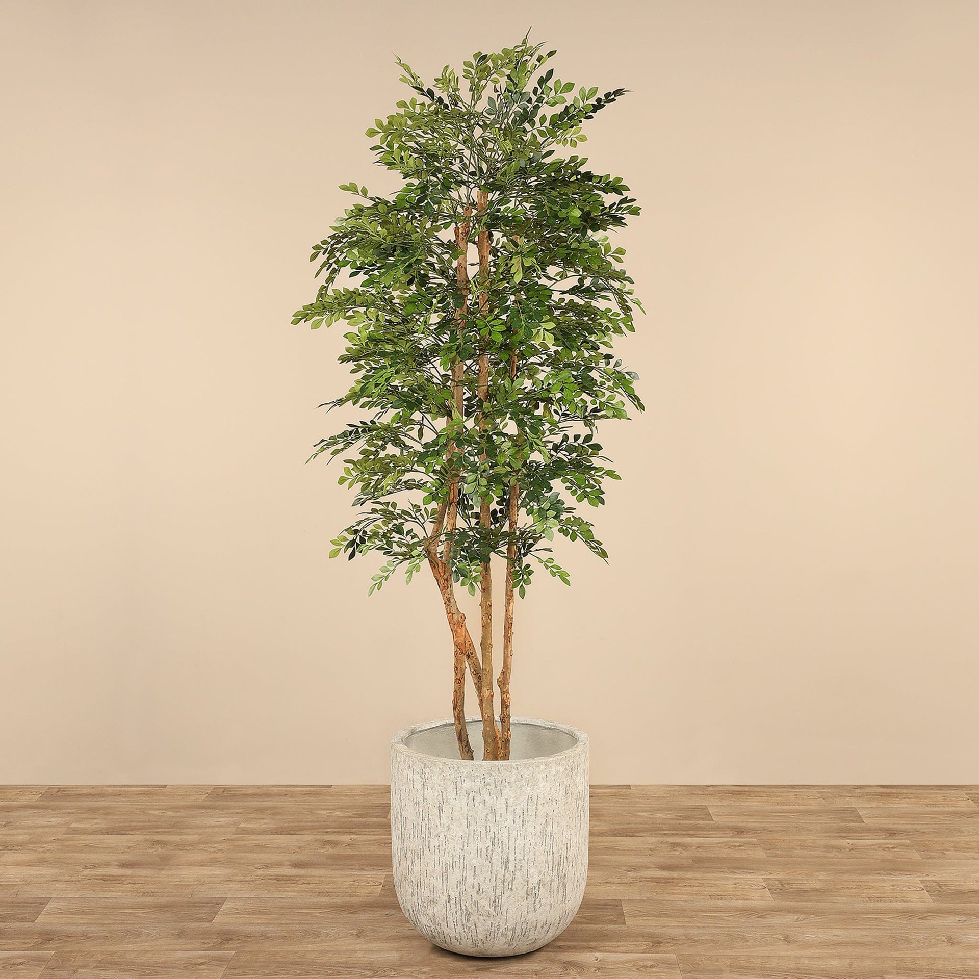 وصف:هذه شجرة أكاسيا صناعية بتشطيب واقعي ومناسبة للديكور الداخلي أو المساحات التجارية. البطاقة لا تتضمن أصيص عرضي نهائي — الشجرة تأتي مثبتة داخل أصيص بلاستيكي أسود للترسيخ الآمن أثناء النقل. يمكن استبدال الأصيص أو اختيار أصيص خرساني منفصل من تشكيلة الأواني المعروضة أعلاه لإكمال المظهر الذي تريده.