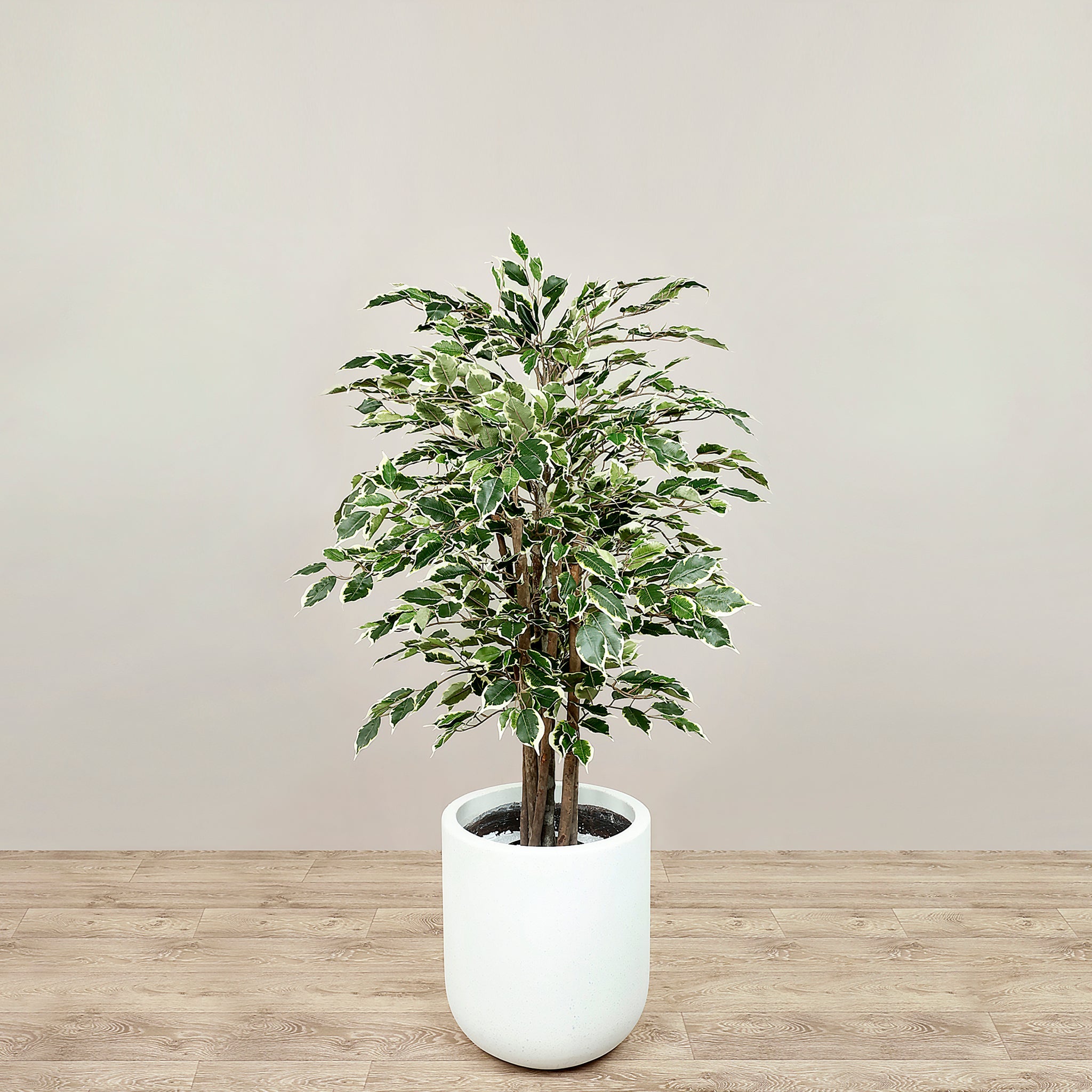 استمتع بمظهر شجرة التين الداخلي الشهيرة دون عناء العناية أو الري. شجرة اصطناعية أنيقة ذات مظهر واقعي من أوراق كثيفة وجذع بني متين، تضيف دفءاً وطابعاً طبيعياً لأي مساحة داخلية.