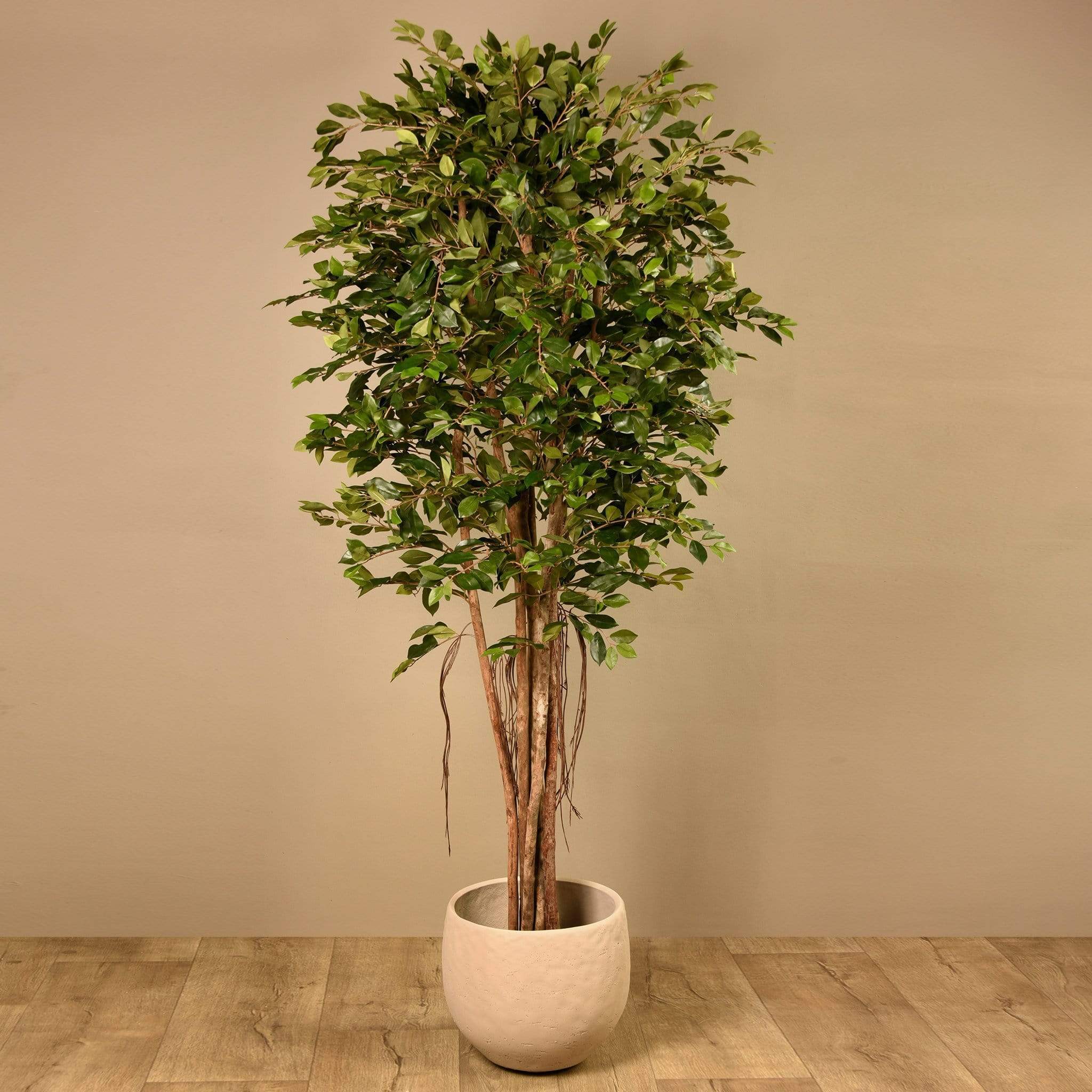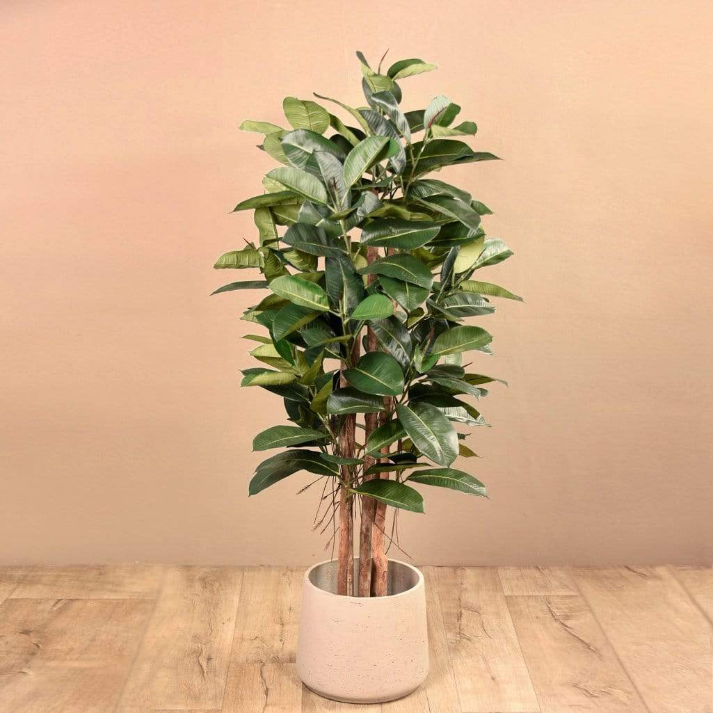 شجرة مثالية للمساحات الداخلية؛ تتميز بأوراق عريضة ووافرة وجذع بني بتفاصيل تحاكي المظهر الطبيعي. لا حاجة للعناية المستمرة أو السقي أو التقليم — تصل الشجرة مجمعة وجاهزة لتزيين منزلك، كل ما عليك هو وضعها داخل الأصيص الذي تختاره للاستمتاع بمظهرها الجميل.