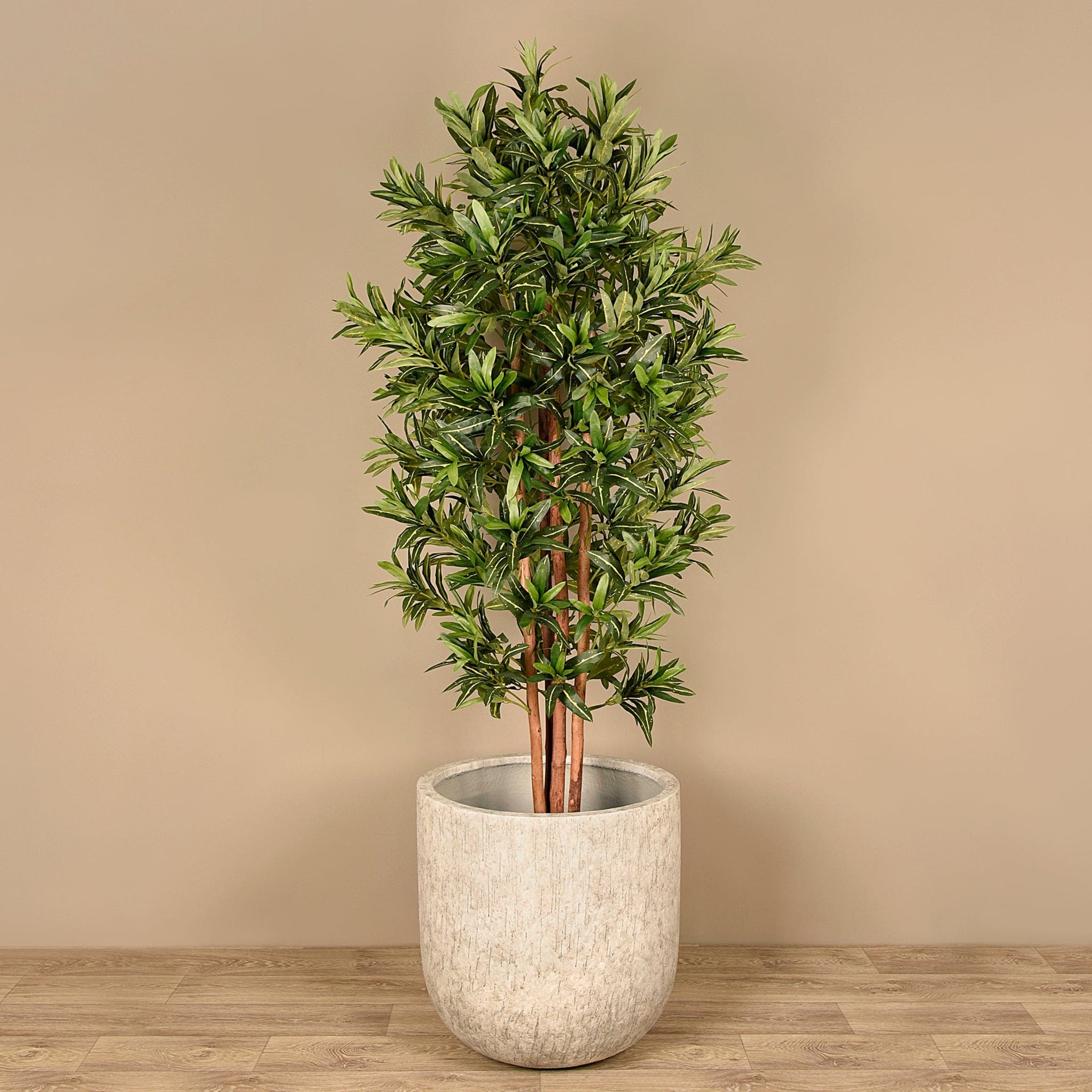 شجرة دراسينا صناعية أنيقة بطول 180 سم، تصميمها الأخضر يضفي لمسة حيوية على المساحات الداخلية دون الحاجة إلى صيانة نبات حي.