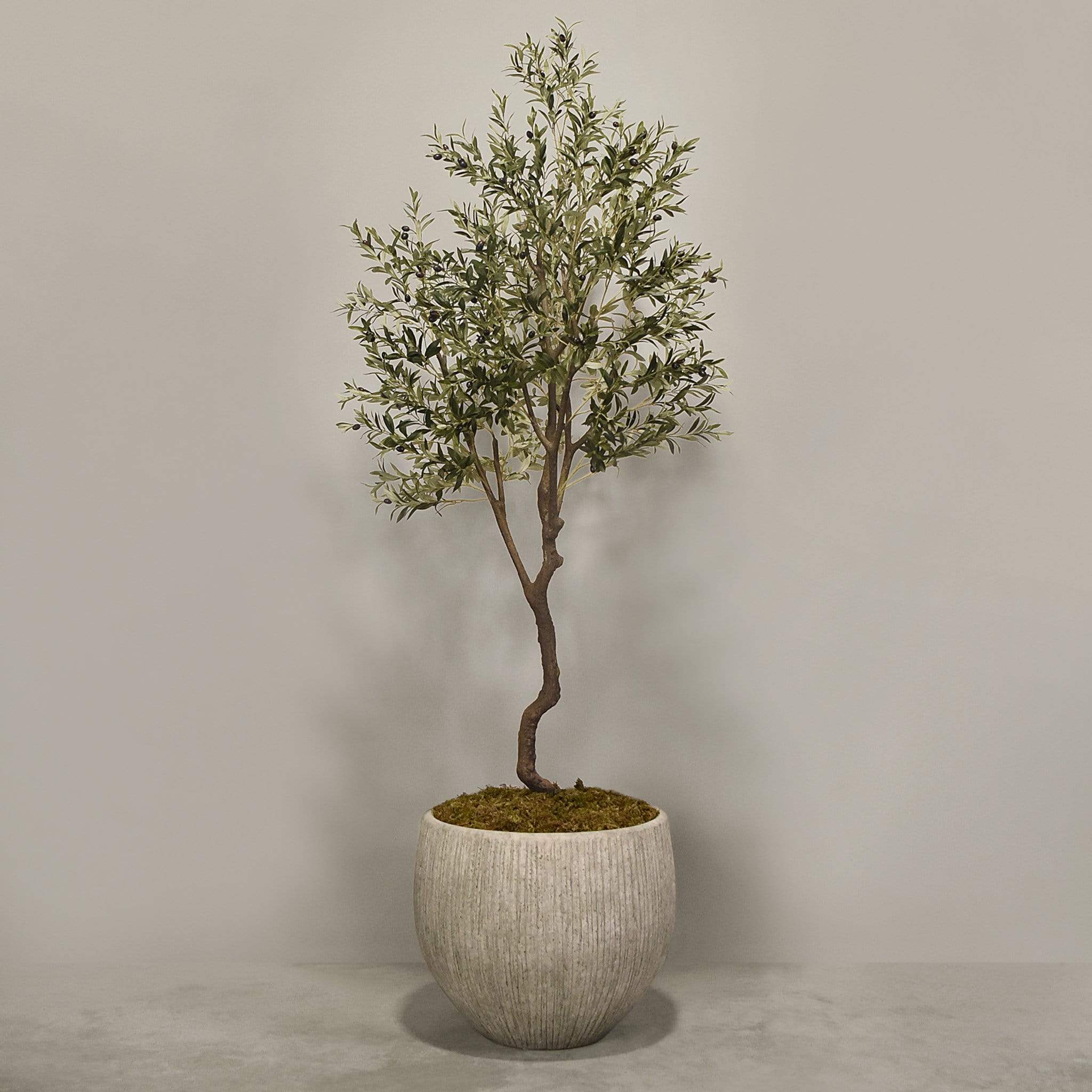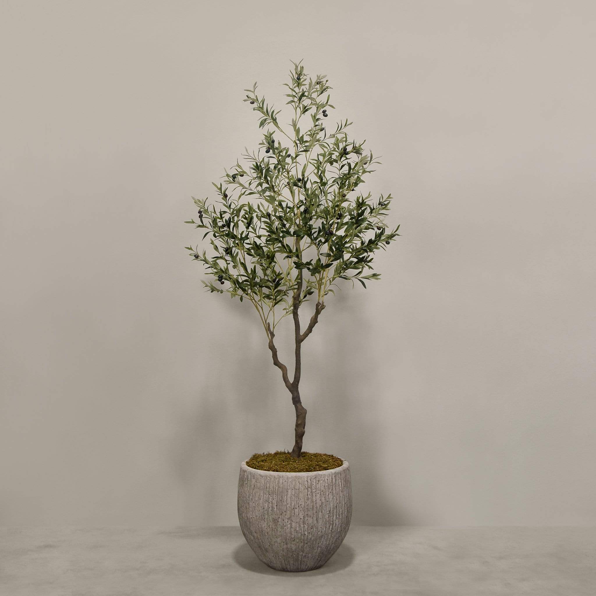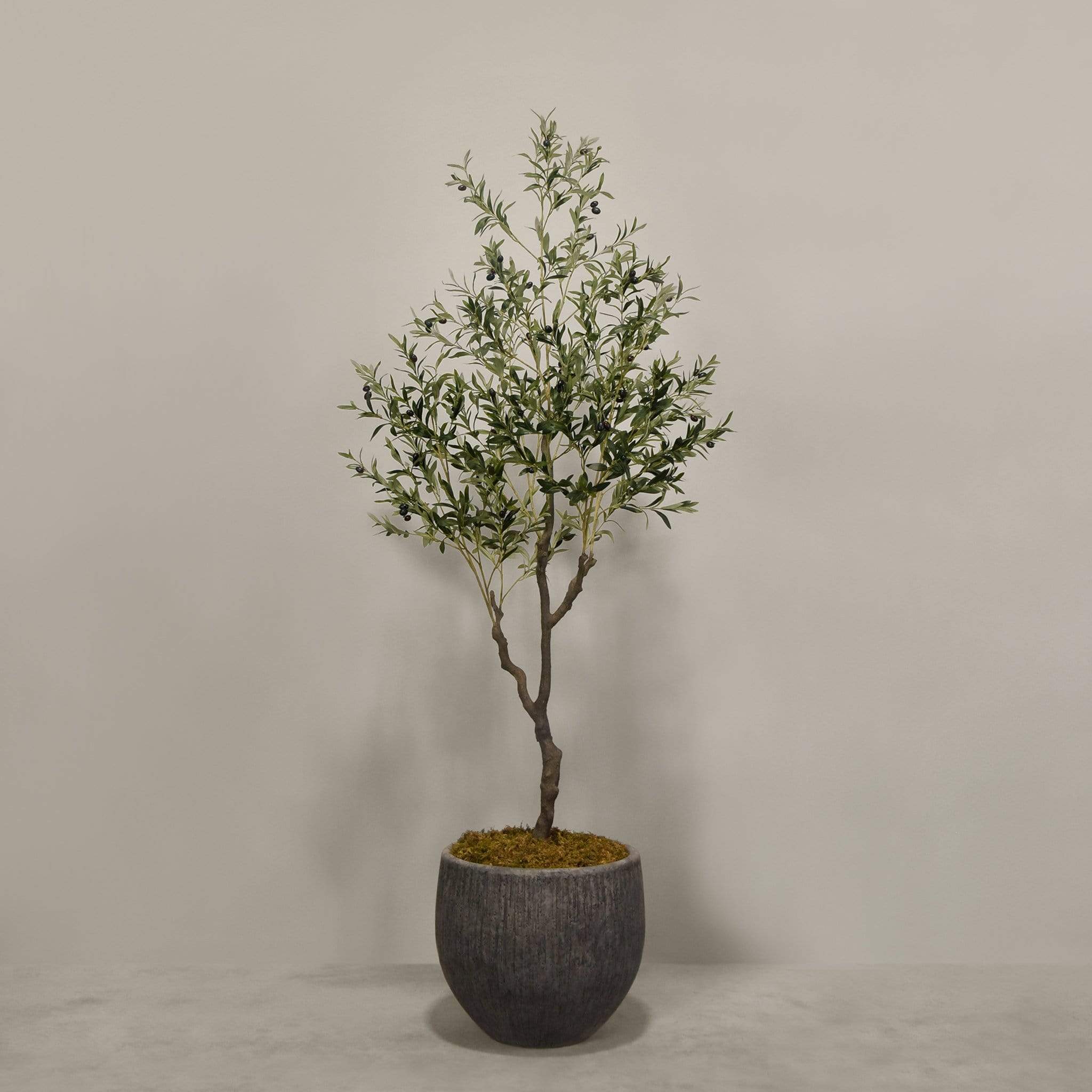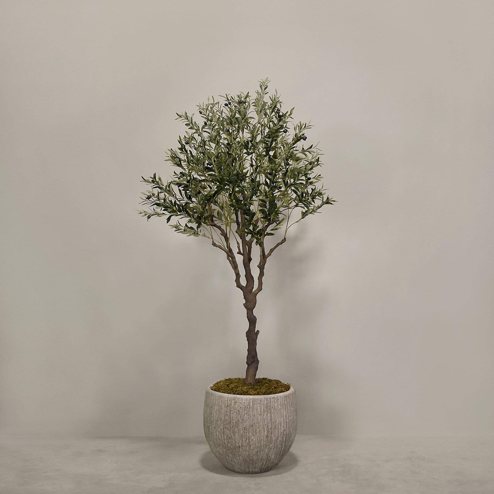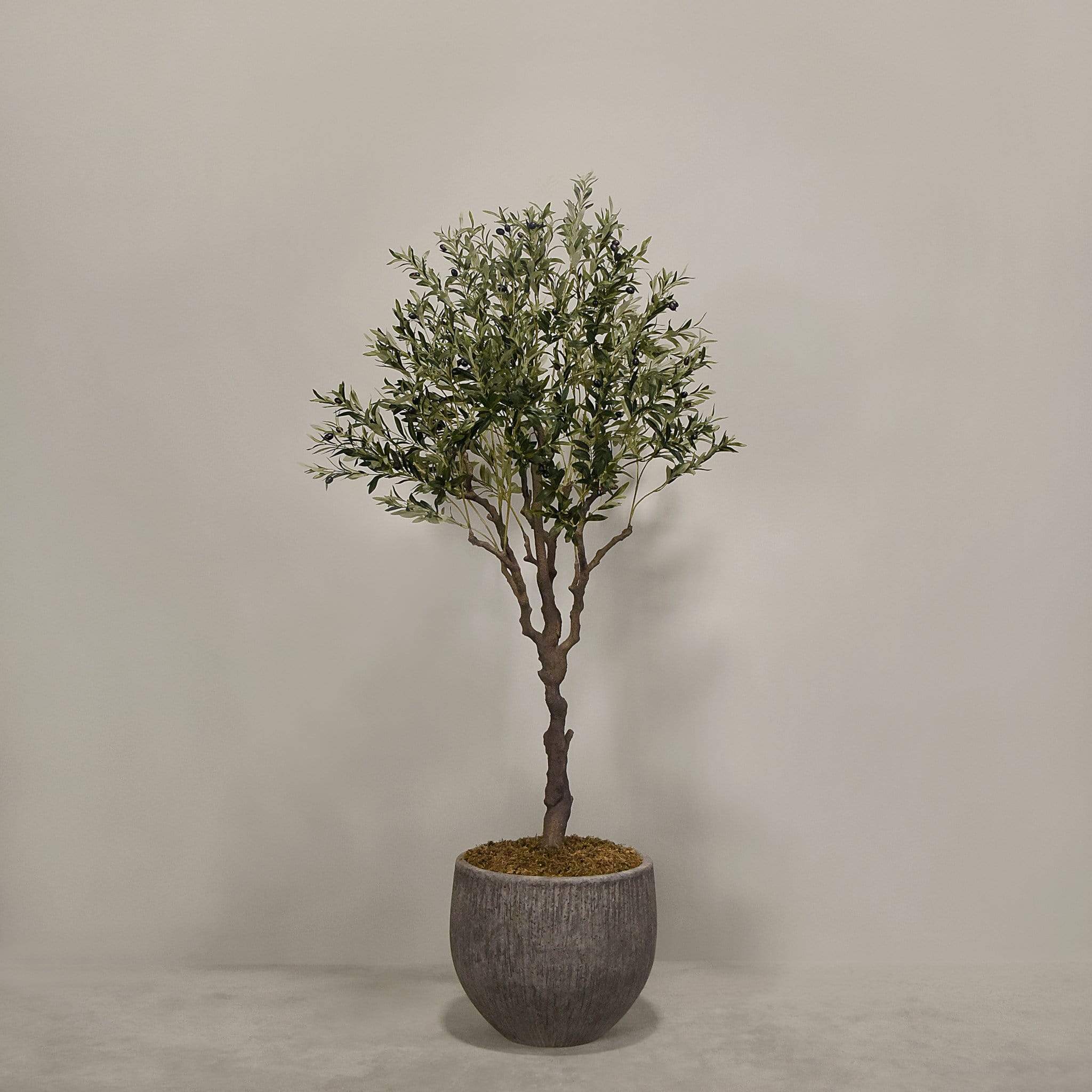 شجرة زيتون صناعية ذات مظهر أنيق تناسب تزيين المنزل أو المكتب أو المساحات التجارية، تأتي مزروعة داخل أصيص جاهز للعرض.