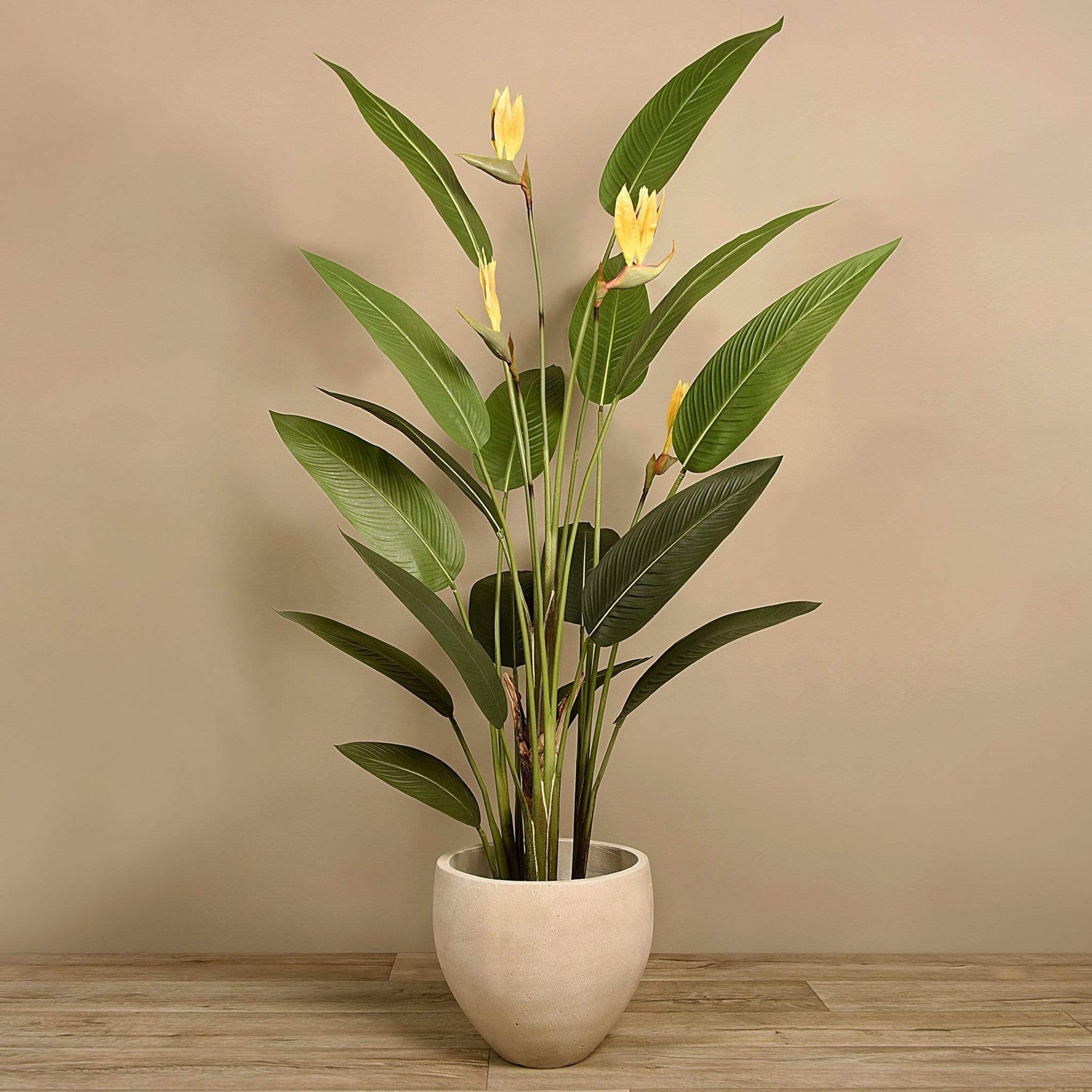 شجرة عصفور الجنة الصناعية هذه خيار مفضل لدى مصممي الديكور بفضل مظهرها العصري والأنيق. تعكس الشجرة مشاعر البهجة والجمال، وتمنح المساحات لمسة خضراء راقية تناسب مختلف الأساليب.