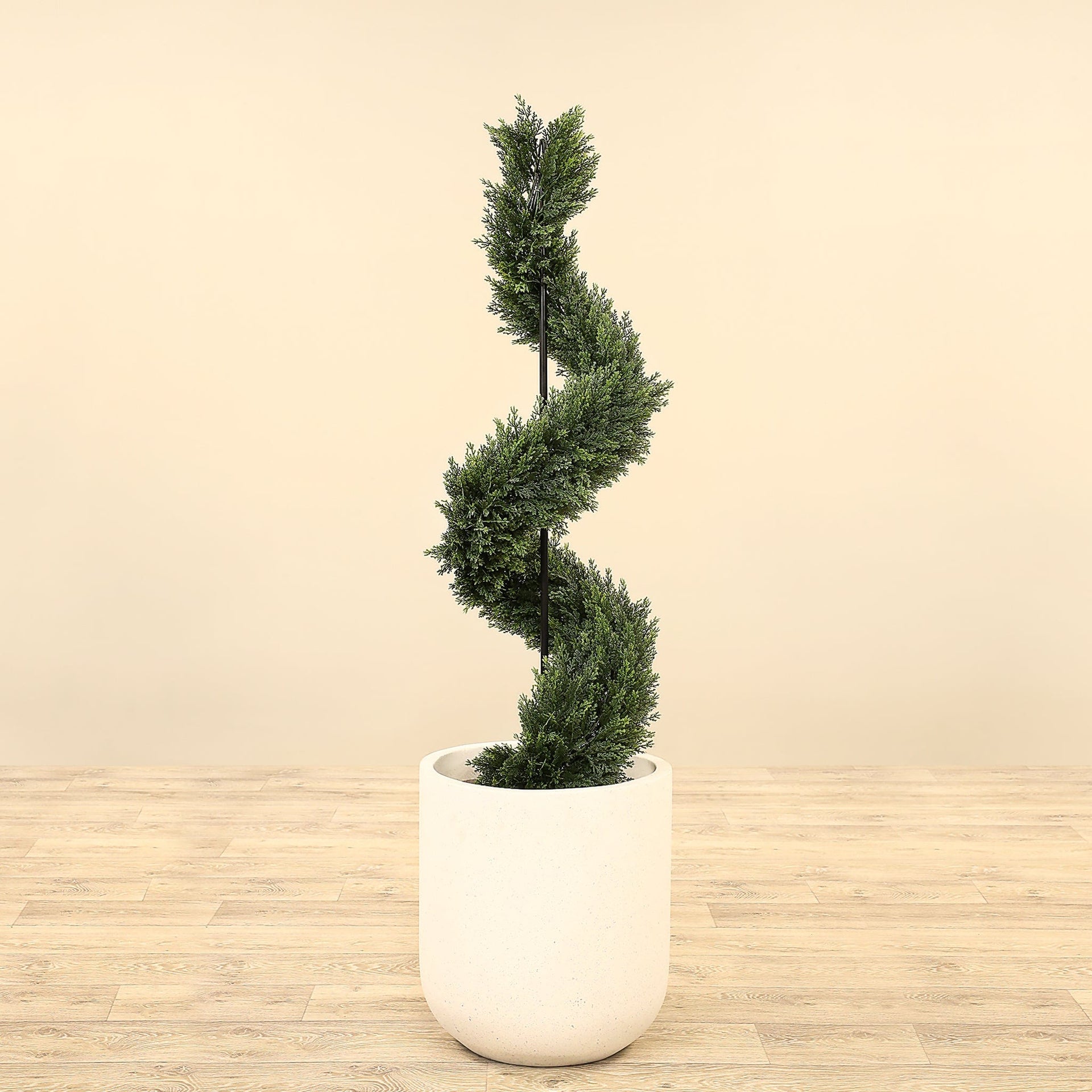 تجمع هذه الشجرة الصناعية بين المظهر الطبيعي والتصميم الكلاسيكي الحلزوني، مع أوراق موزعة بعناية تمنحها مظهراً حيوياً وأنيقاً. مثالية كقطعة مستقلة تبرز في أي زاوية، ويمكن أيضاً دمجها ضمن تشكيلات نباتية لخلق مشهد طبيعي يتناسب مع مختلف أساليب الديكور.