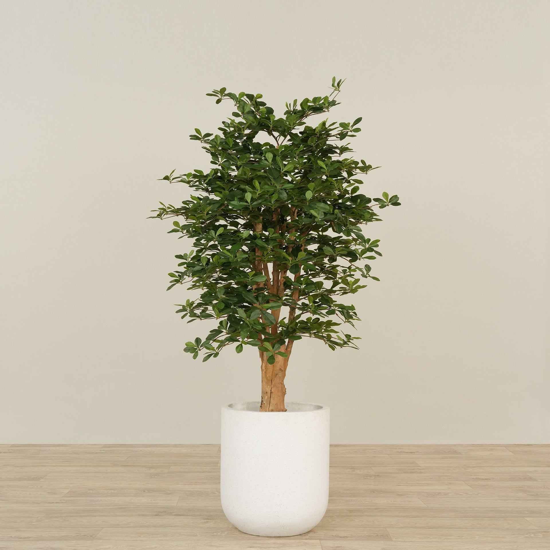 حوّل أي مساحة إلى واحة أنيقة مع شجرة شيفليرا الاصطناعية بارتفاع 150 سم. تجمع هذه التحفة النباتية بين مظهر طبيعي غني وخلوّها من متاعب العناية: لا ري، لا قلق من أشعة الشمس، ولا تدهور موسمي—مظهر دائم من الخضرة والرفاهية.