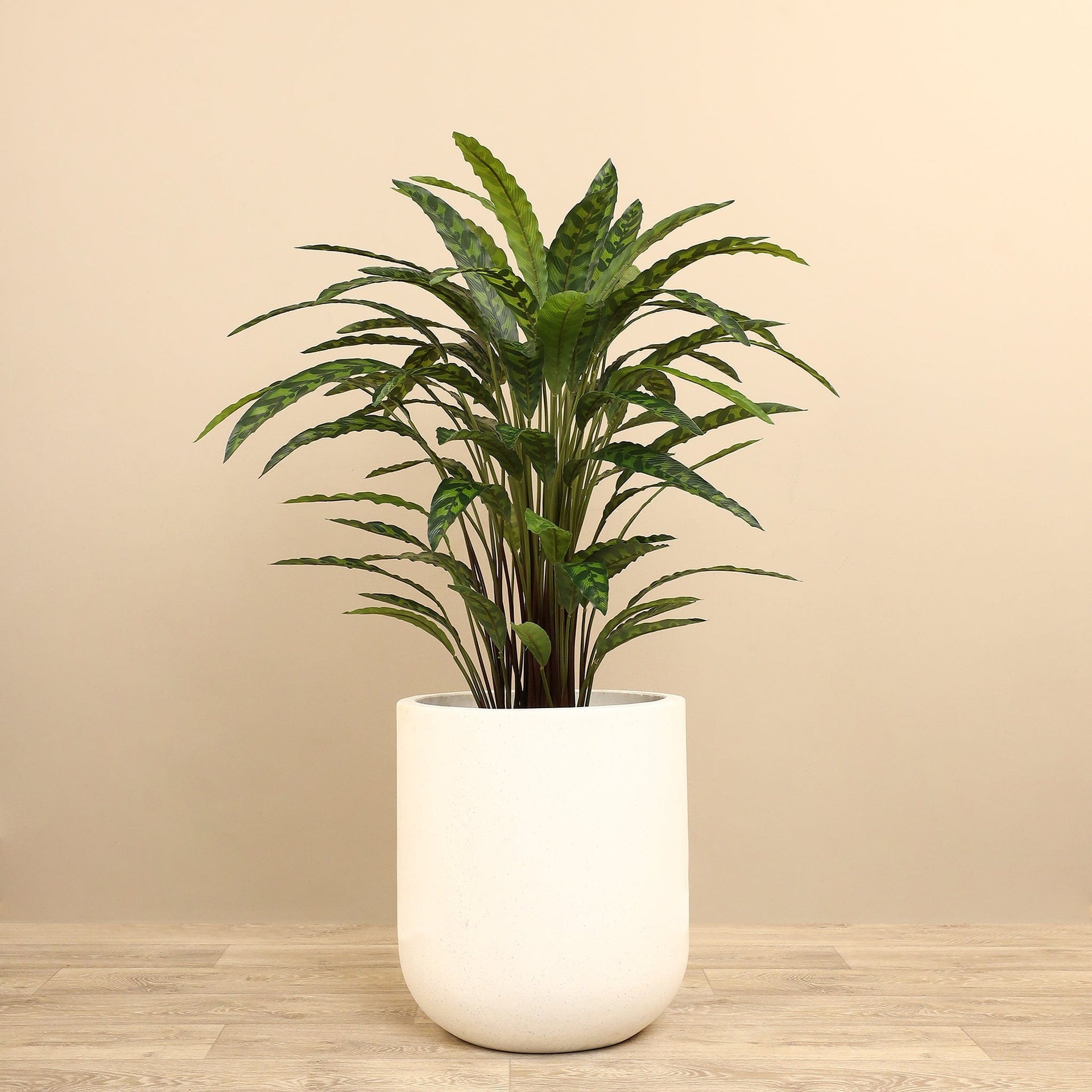 شجرة كالاتيا الاصطناعية خيار أنيق يعيد روح البدايات الجديدة إلى مساحتك دون عناء العناية بالنباتات الحقيقية. أوراقها المخططة بدقة تمنحها مظهرًا طبيعيًا ملفتًا يناسب التصاميم العصرية والكلاسيكية على حد سواء.