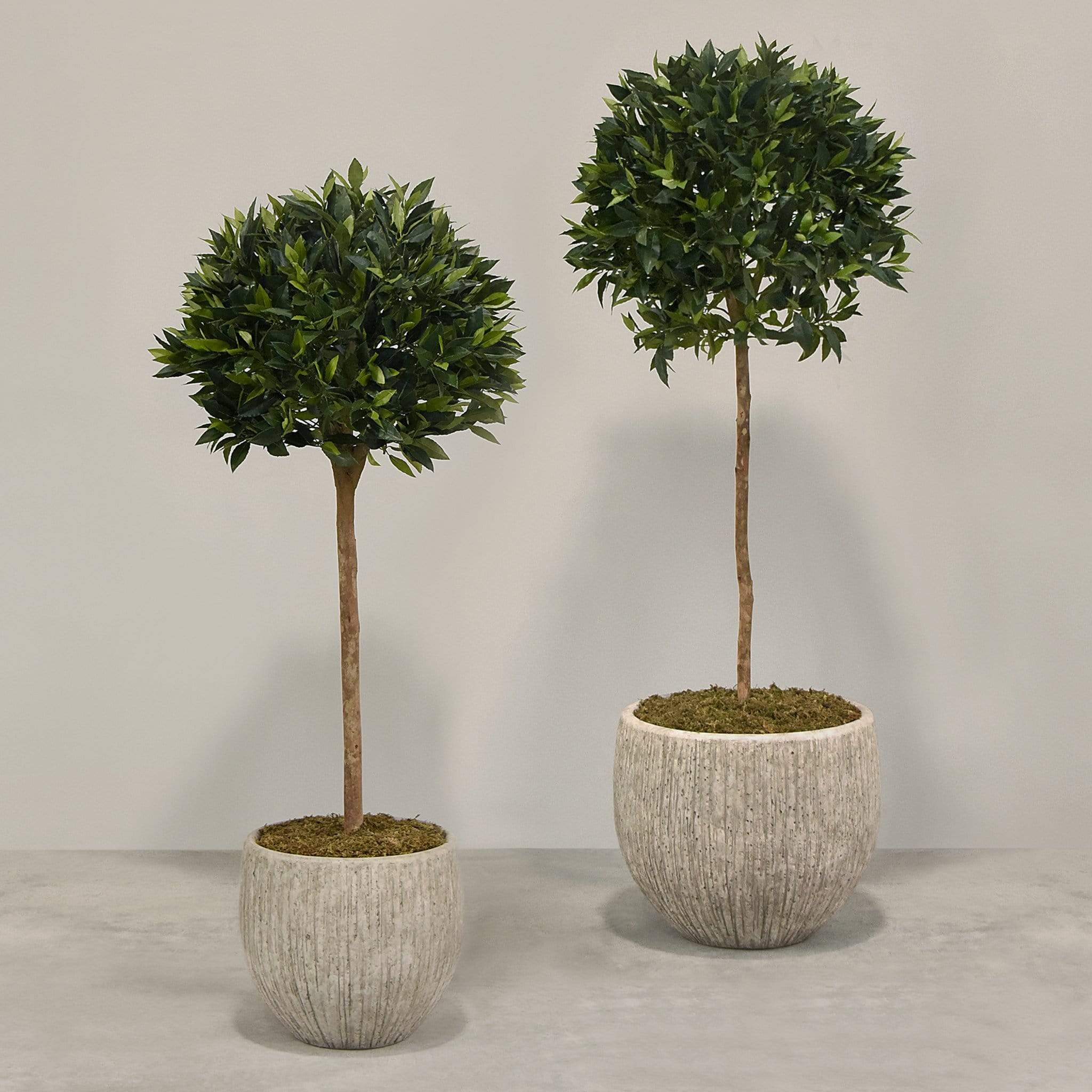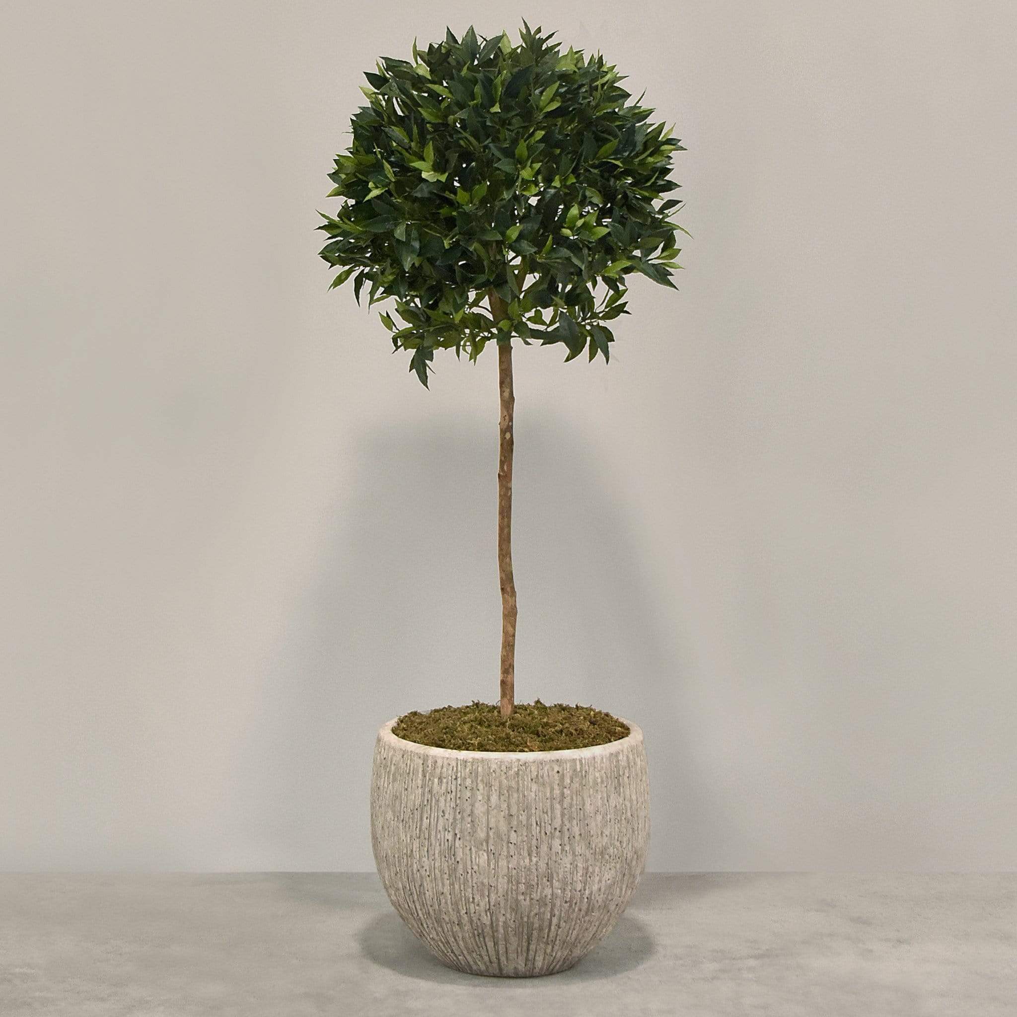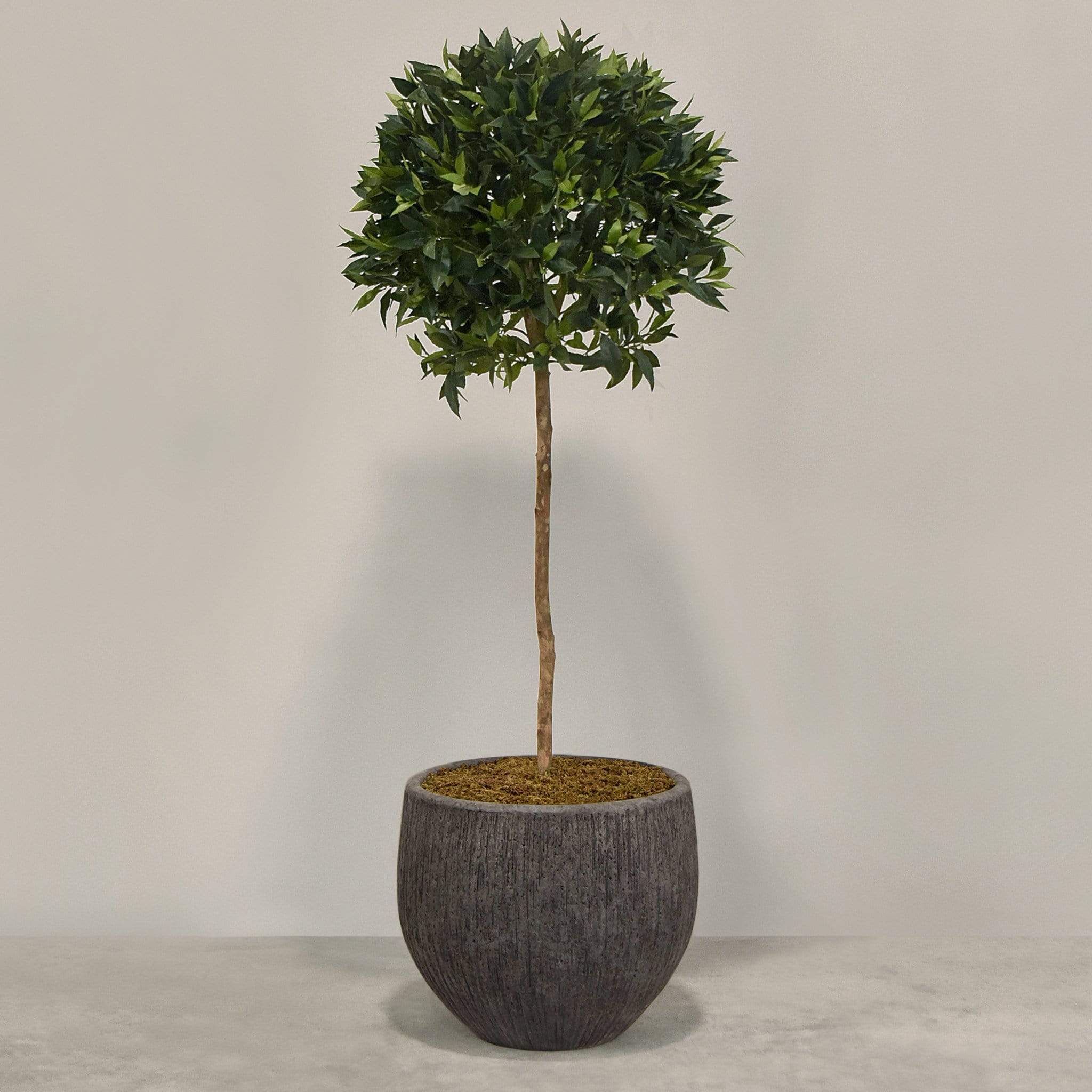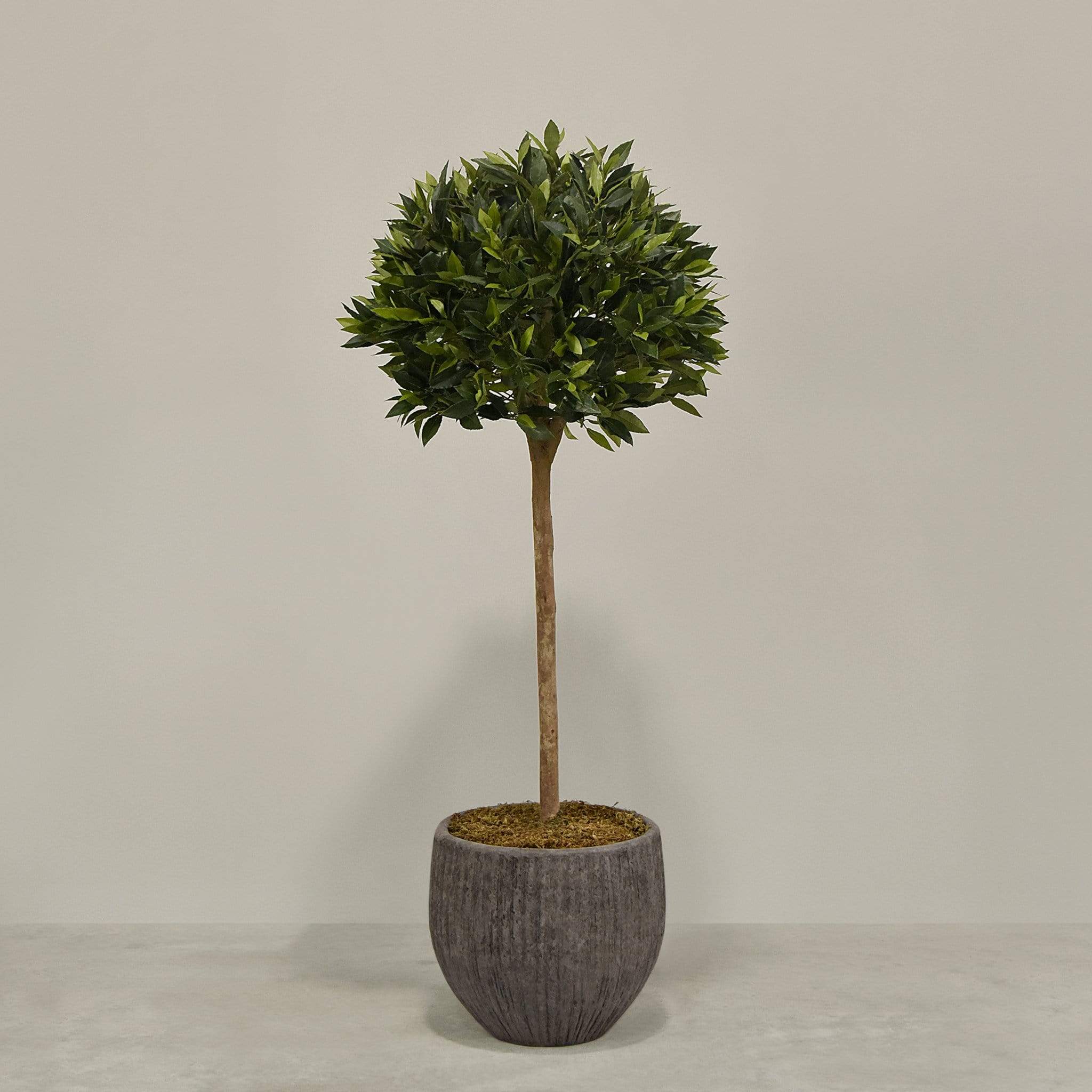شجرة لوريل صناعية منسقة بعناية ومثبتة داخل أصيص. كل قطعة تُصنع وتُغرس يدويًا، مما يمنحها مظهرًا طبيعيًا ومتفردًا.