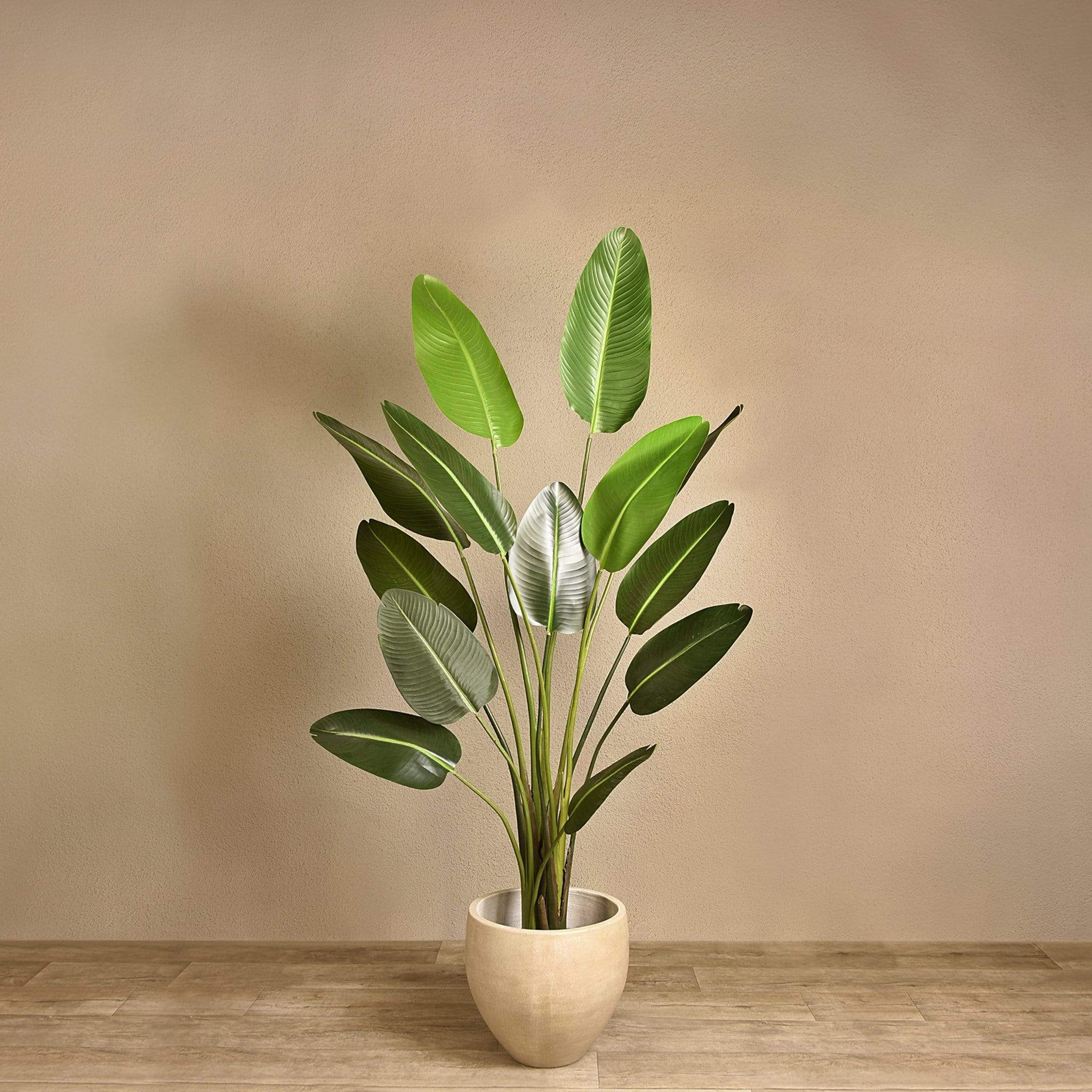 حوّل منزلك أو مكتبك إلى ركن استوائي أنيق مع شجرة الموز الصناعية هذه. تمنحك مظهراً طبيعياً وغنياً بالأوراق دون عناء العناية والمقاومة لعوامل الوقت، وتصل إليك مجمعة بالكامل لتكون جاهزة للعرض فوراً.