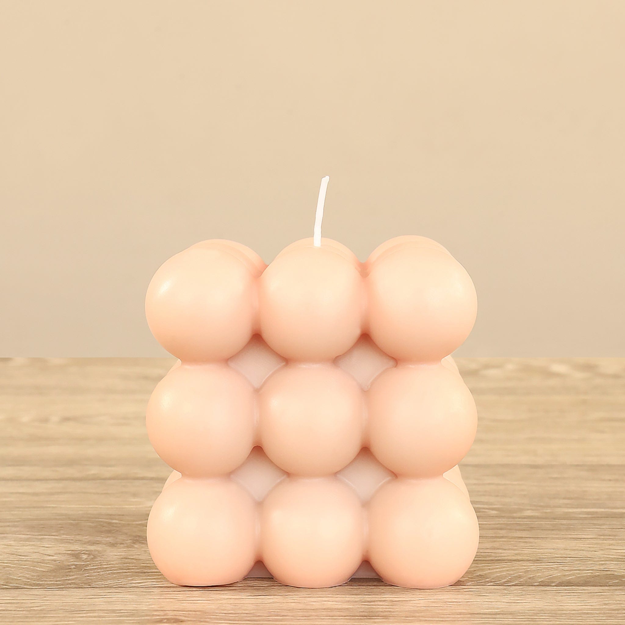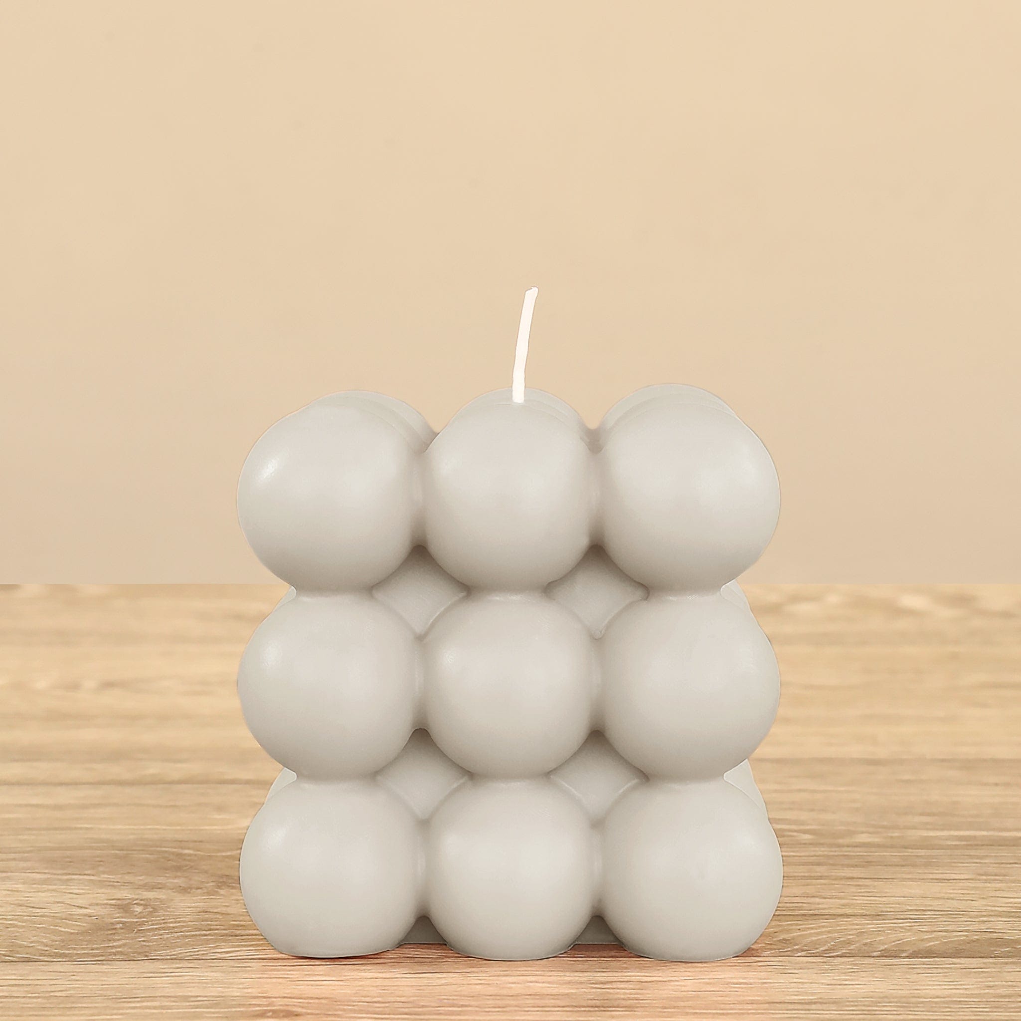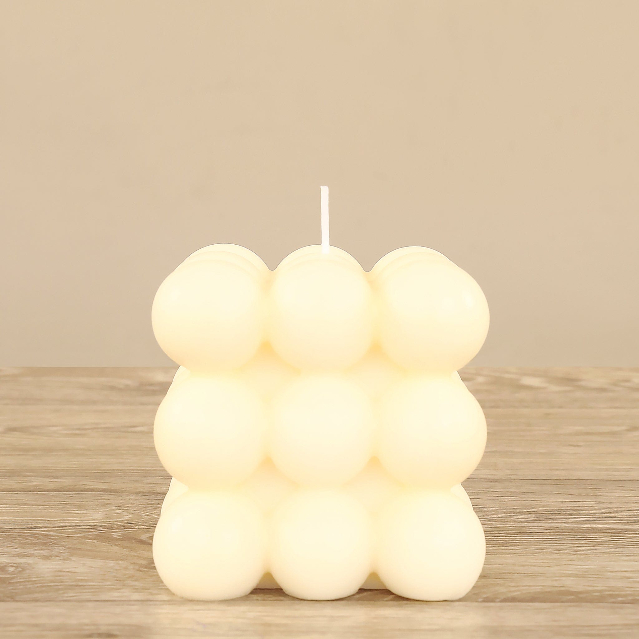 شمعة عصرية مصنوعة بعناية فائقة من مزيج فاخر من شمع الصويا وشمع النحل النقي. عند إشعال الفتيل يرتفع لهب رقيق وهادئ يملأ المكان بدفء وسكينة، بينما تضيف نقوش الفقاعات لمسة جمالية أنيقة لمساحتك. مثالية لخلق جو مريح ومفعم بالأناقة في أي غرفة.