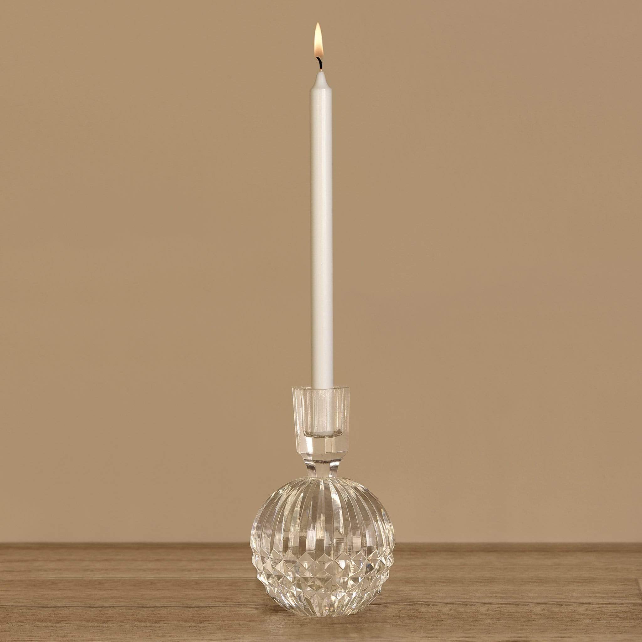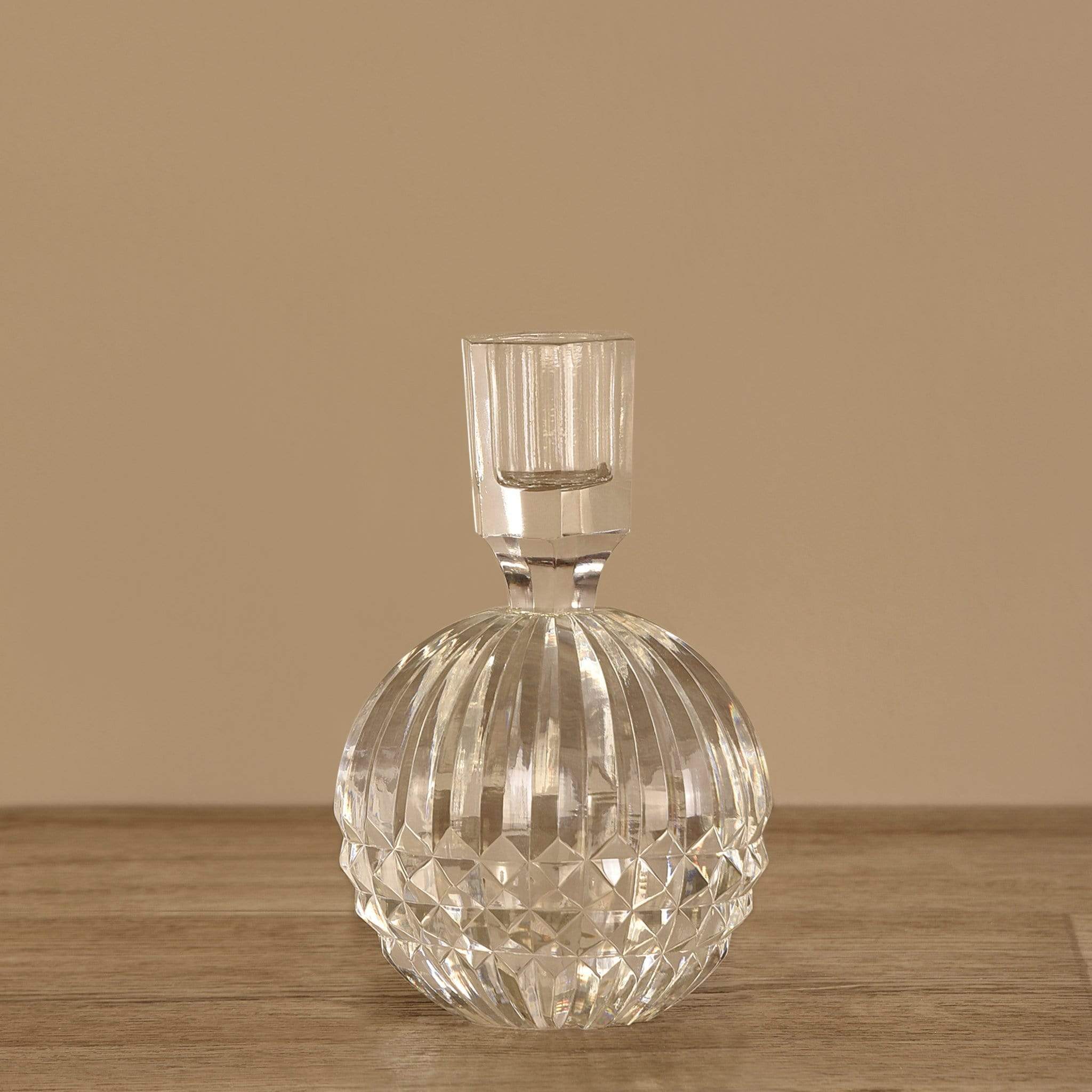 حامل شفاف أنيق مصنوع من الزجاج، مثالي لعرض الشموع بشكل آمن وجميل في أي مكان بالمنزل.
