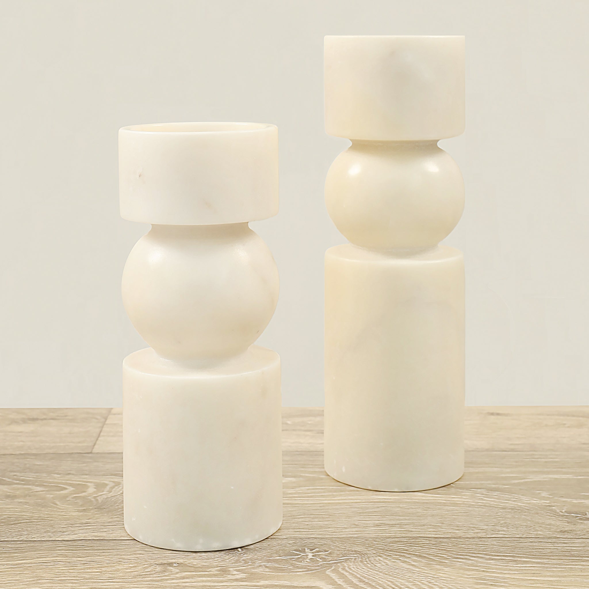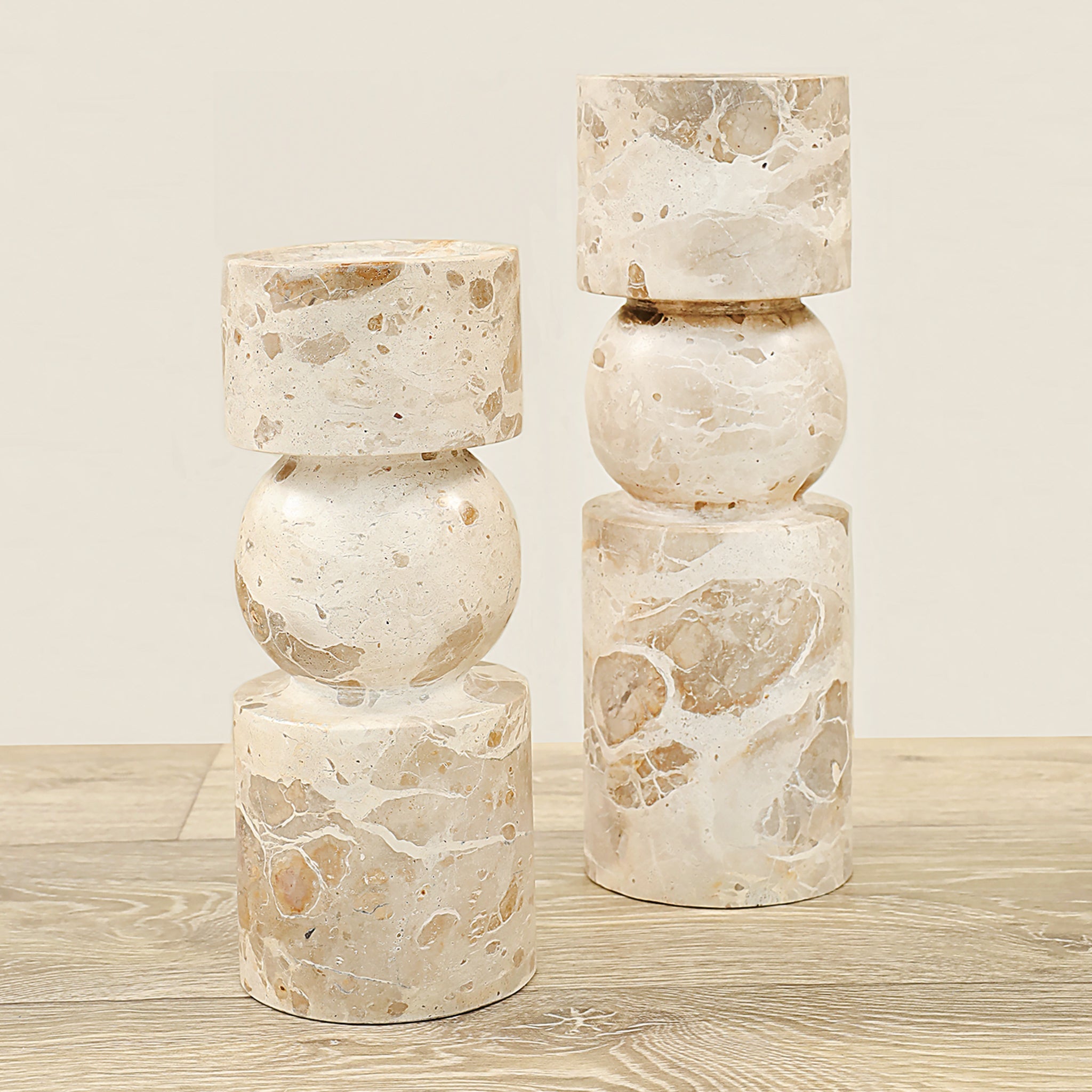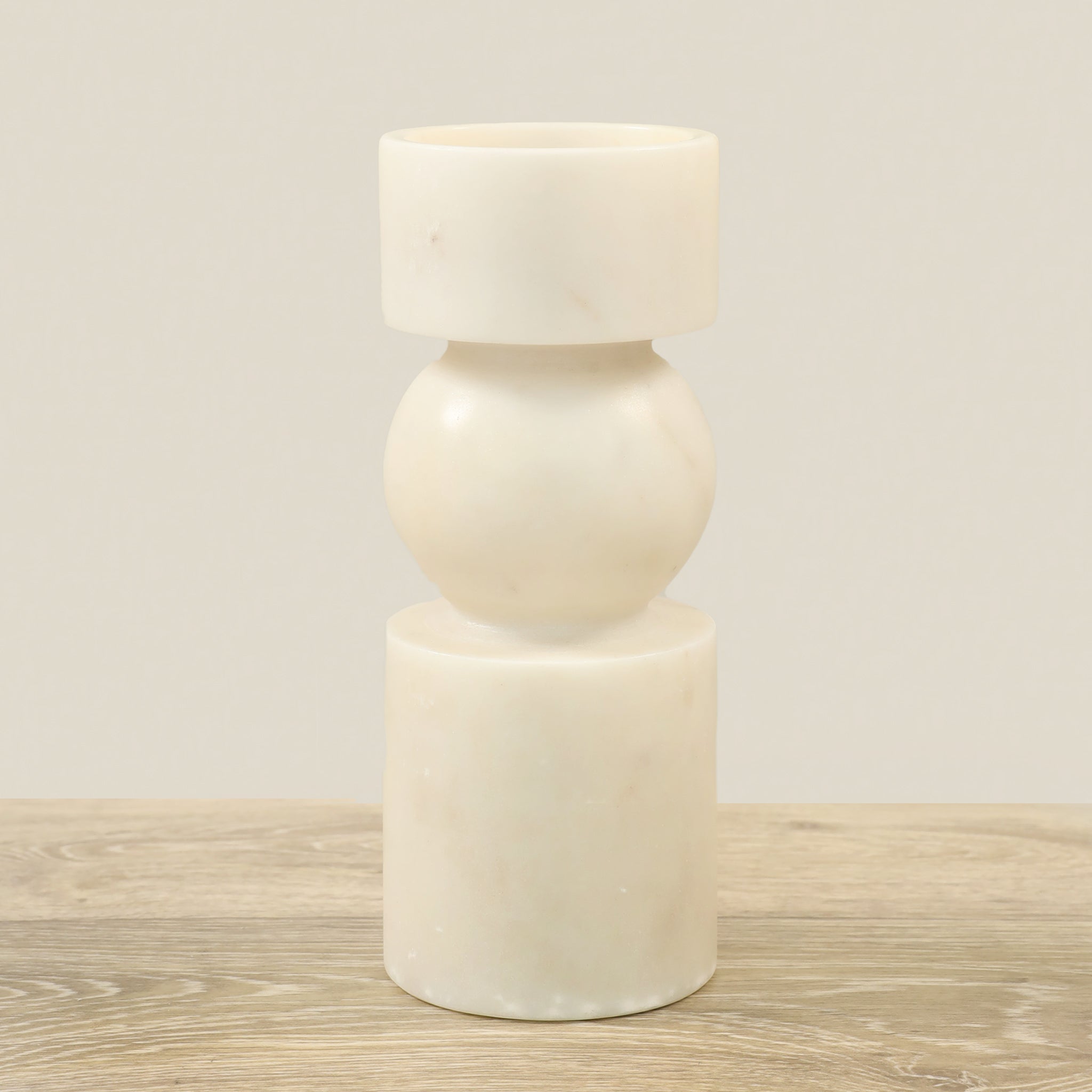 حامل شموع رخامي أنيق يجمع بين البساطة والفخامة. التشطيب اليدوي والعروق الطبيعية في الرخام يمنحانه طابعاً حرفياً ودفئاً بصرياً، ما يجعله قطعة ديكور متعددة الاستخدامات تضيف لمسة راقية لأي مساحة.