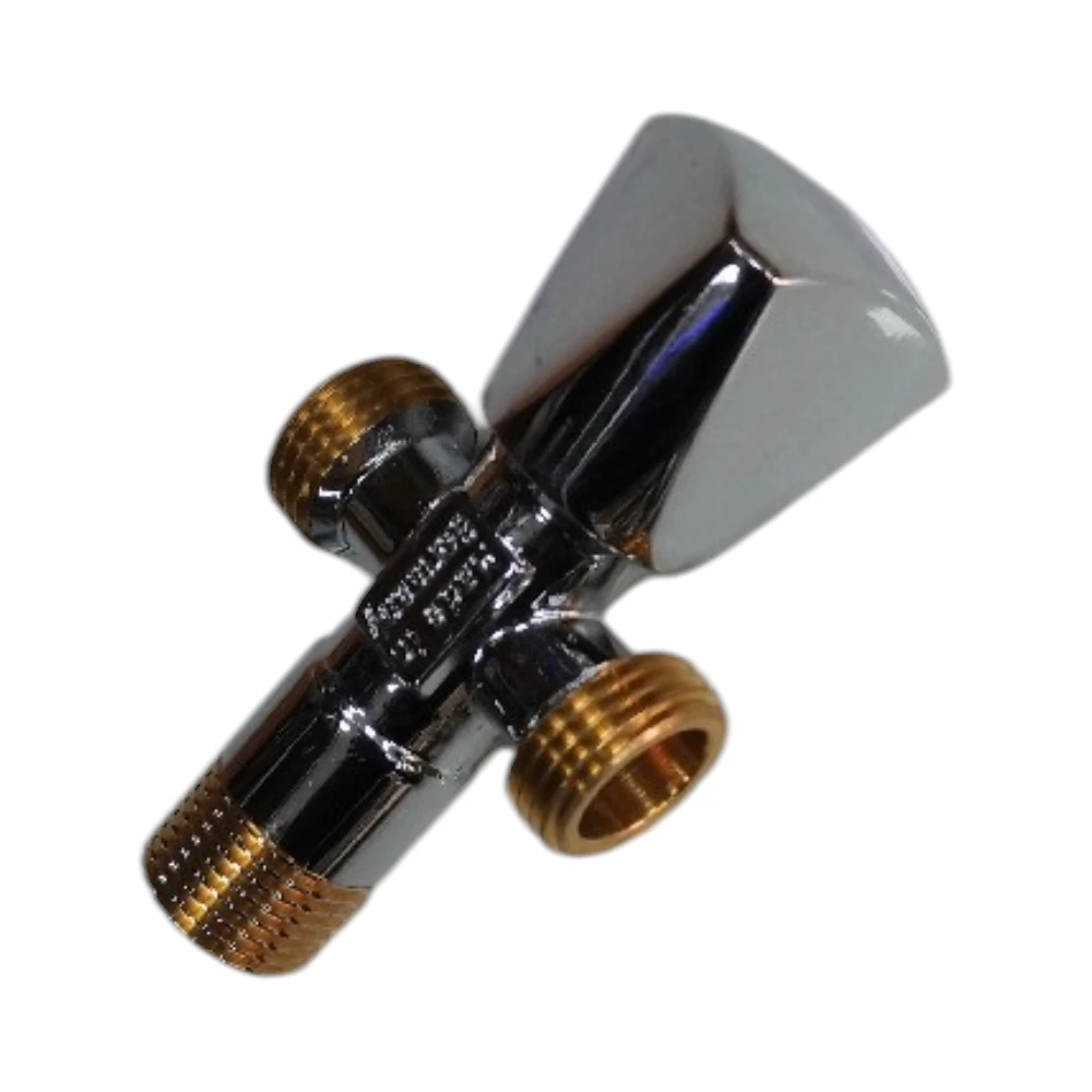 محبس زاوية نحاسي من HELISENT — صمام تحكم متعدد المخارج بطبقة طلاء لامعة مقاومة للتآكل