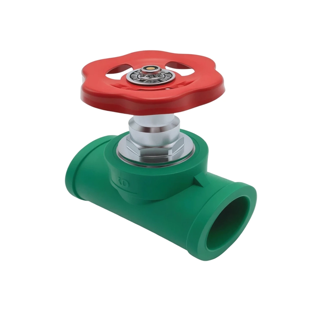 محبس يدوي من مادة بولي بروبلين (PPR) بلون أخضر، مصمم للتحكم في فتح وإغلاق تدفق المياه داخل شبكات السباكة. يركب مباشرة على أنابيب PPR بواسطة اللحام الحراري ليضمن توصيلًا محكمًا وخاليًا من التسربات في التركيبات المنزلية والتجارية.