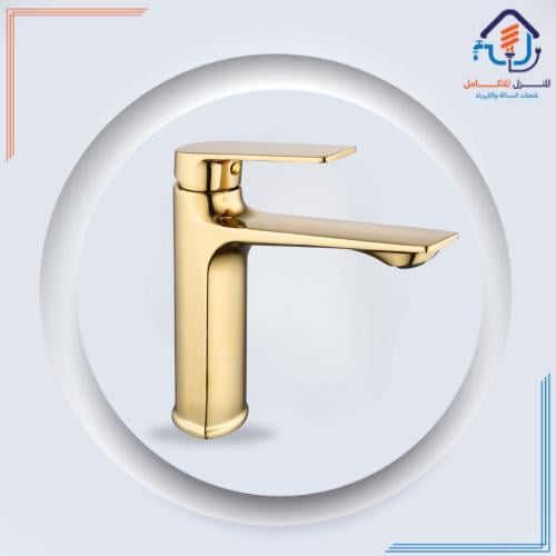 خلاط مغسلة متوسط الحجم بتصميم أنيق ولمسة نهائية ذهبية تضفي فخامة على حمّامك. يجمع بين المظهر الرفيع والأداء العملي ليكون قطعة مركزية مثالية للمغاسل العصرية.