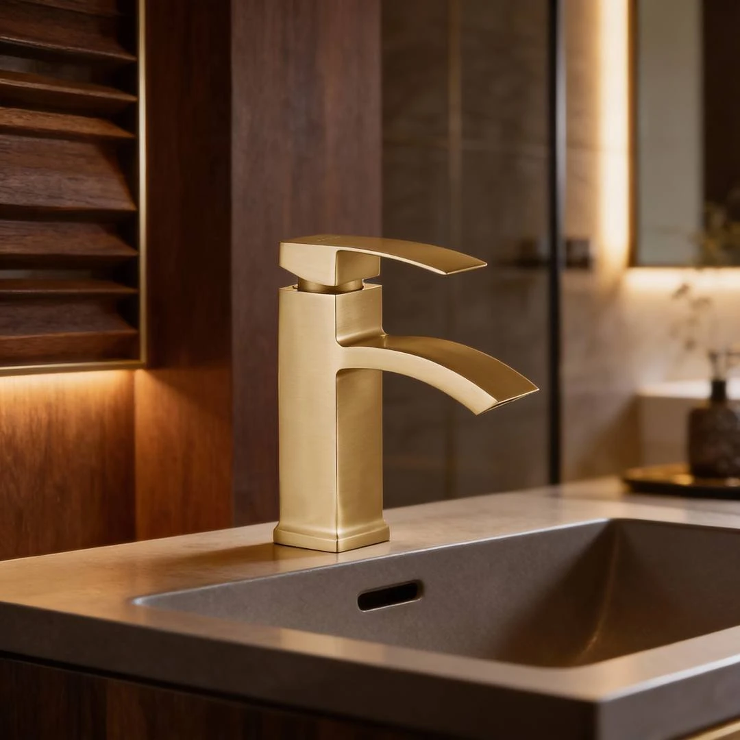 خلاط المغسلة هذا يجمع بين جمالية الشلال الفاخرة وطابع ذهبي مطفي أنيق مع سهولة التركيب بفضل الليّات المرفقة. مناسب لمن يريد ترقية مظهر الحمام أو المغسلة دون التضحية بالعملية والمتانة.