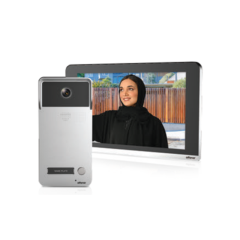 - وحدة خارجية مزوّدة بكاميرا عالية الدقة وزر نداء واحد.