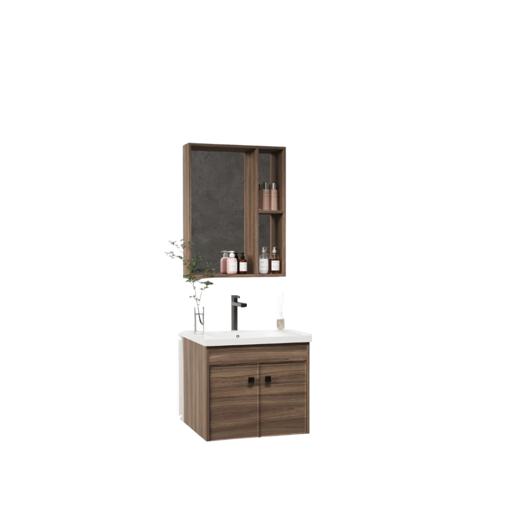 جدد حمامك بطقم مغسلة فايبر من فيراغو بمقاس 60 سم. يجمع الطقم بين مظهر أنيق وعمليّة يومية، بفضل خزانة فايبر مقاومة للماء بلمسة نهائية بنية خشبية دافئة وحوض سيراميك ناعم. تصميمه يوفر تخزيناً منظماً ومرايا متكاملة لتجربة استخدام مريحة ومتسقة.