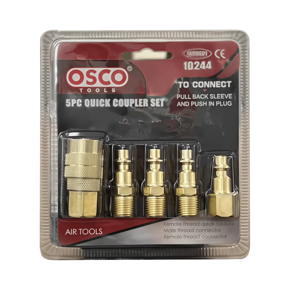 طقم الوصلات السريعة من OSCO (5 قطع) يوفر حلاً عملياً وموثوقاً لتوصيل أدوات وأنظمة الهواء المضغوط بسرعة وكفاءة داخل الورش ومواقع العمل. صُمم الطقم لسهولة التركيب والفصل السريع دون الحاجة لأدوات معقدة، مع مستوى عالٍ من الموثوقية ومقاومة للتسرب.