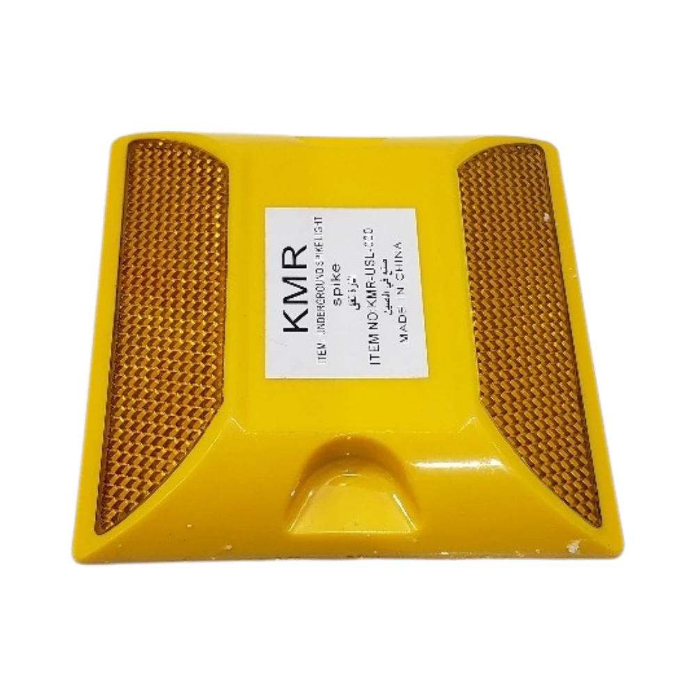 عاكس طريق أرضي بلاستيكي بلون أصفر عاكس للضوء – متين لتحمل السيارات والمركبات | KMR