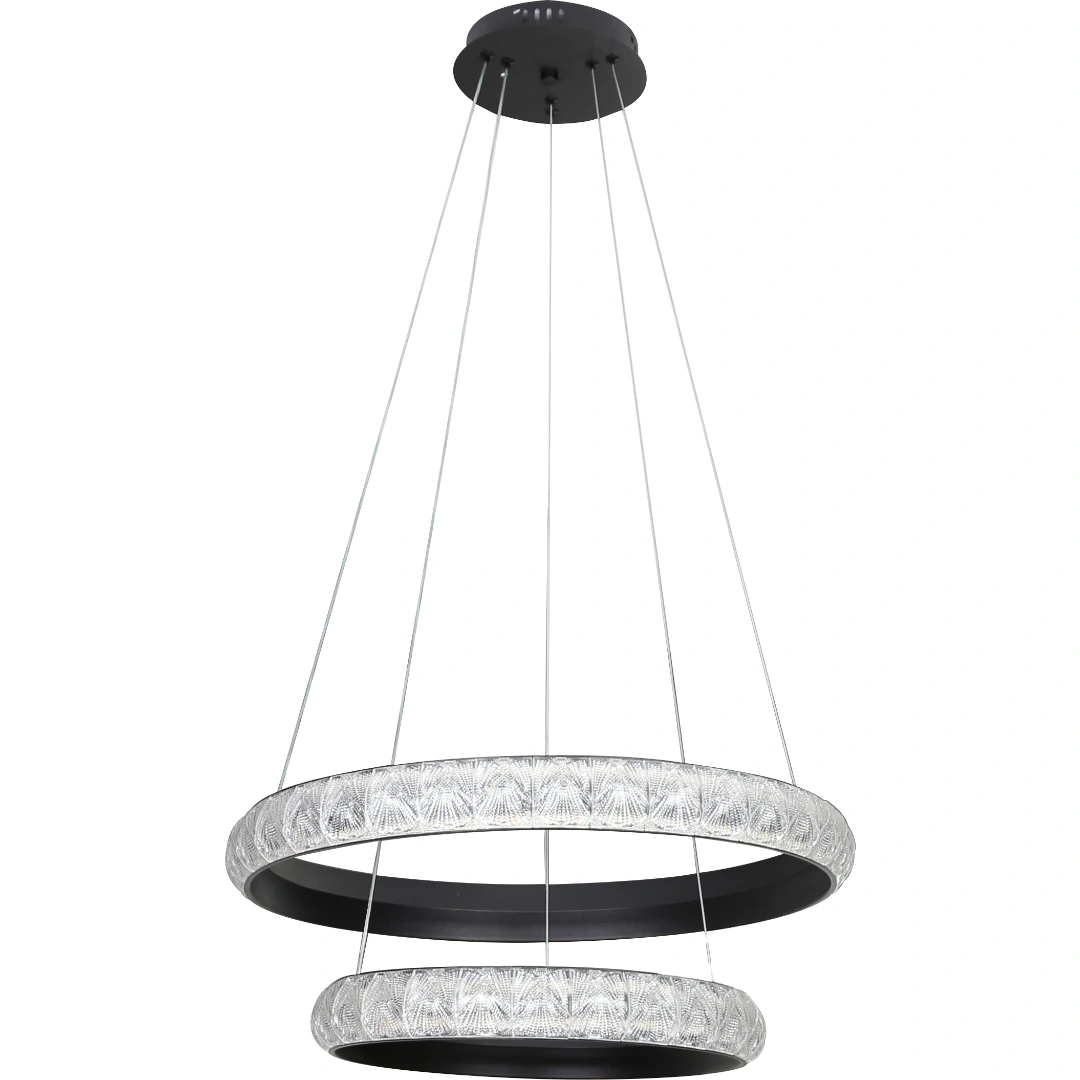 علاقي مودرن باللون الأسود، مزود بإضاءة LED ثلاثية الألوان لتبديل درجة الإضاءة بسهولة بين إضاءات مختلفة تلائم مزاجك واحتياجاتك. تصميمه العصري والمرتب يضيف بعداً جمالياً للمساحات الداخلية ويعمل كمصدر إضاءة مركزي فعّال للمساحات مثل غرفة المعيشة، غرفة الطعام أو المدخل.