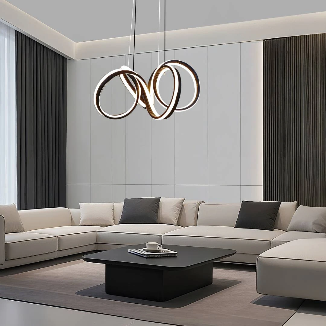ثريا مودرن باللون الأسود بقدرة 105 واط وإضاءة LED ثلاثية الألوان خيار عملي وجمالي لمن يريد دمج تصميم عصري مع إضاءة مرنة وموفرة. اختر الوضع المناسب لمزاجك وتمتع بأجواء متجددة في منزلك أو مكتبك.
