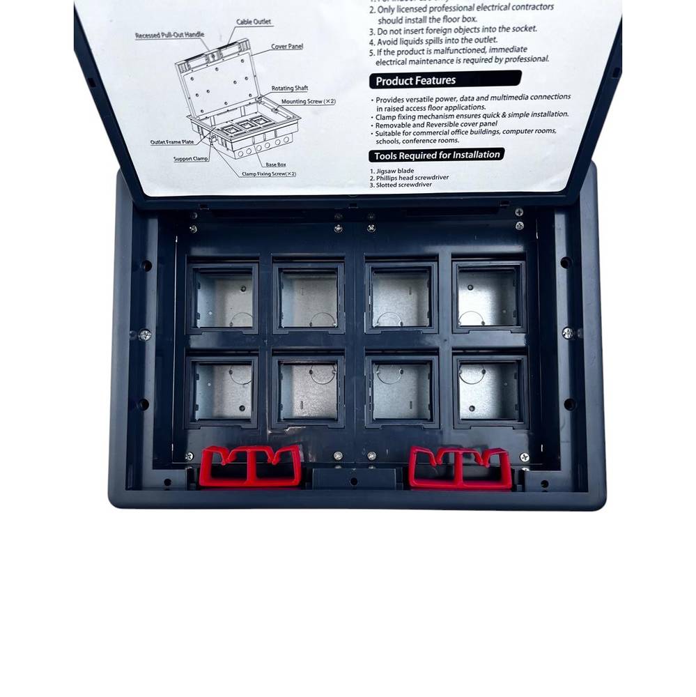 علبة أرضية كهربائية متعددة الاستخدامات مصممة لتوفير وصول مرتب وآمن لمنافذ الطاقة والبيانات والميديا في المساحات التجارية والمهنية. تجمع بين التصميم الأنيق والمتانة لتلبية احتياجات بيئات العمل الحديثة.
