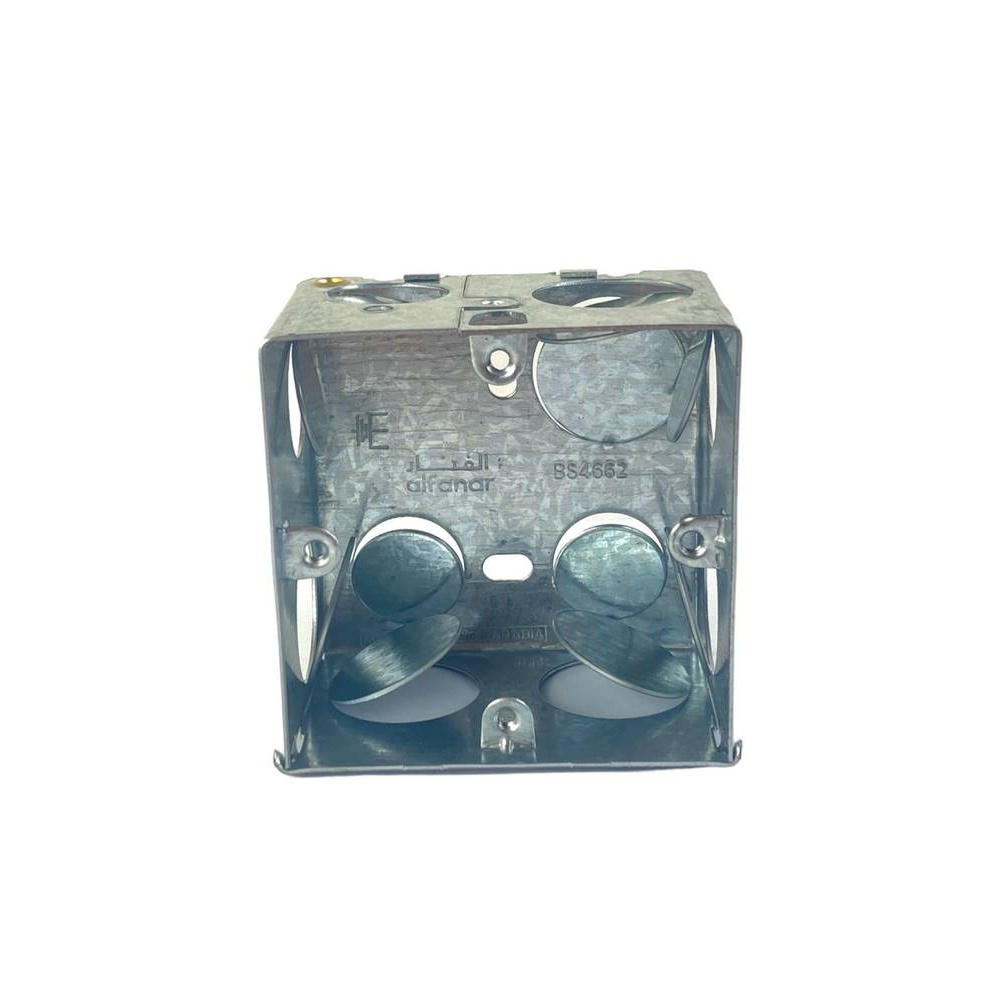 علبة حديد فردية من علامة الفنار، مصممة لتثبيت المفاتيح وتوصيل الأسلاك داخل الجدران. تجمع بين متانة المادة وسهولة التركيب لتوفير حل عملي وآمن للتوصيلات الكهربائية.