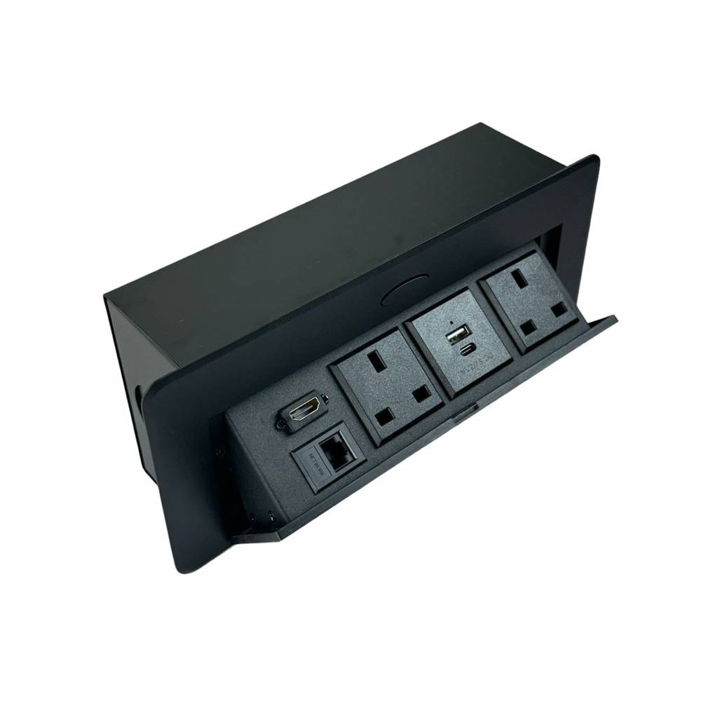 علبة فيش مكتبي منبثقة عملية وأنيقة توفر حلول طاقة وشحن واتصال متكاملة لسطح المكتب. تصميم منبثق بآلية فتح وإغلاق سلسة يسمح بإخفاء المنافذ عند عدم الاستخدام ويوفر مظهراً مرتباً لمساحات العمل.