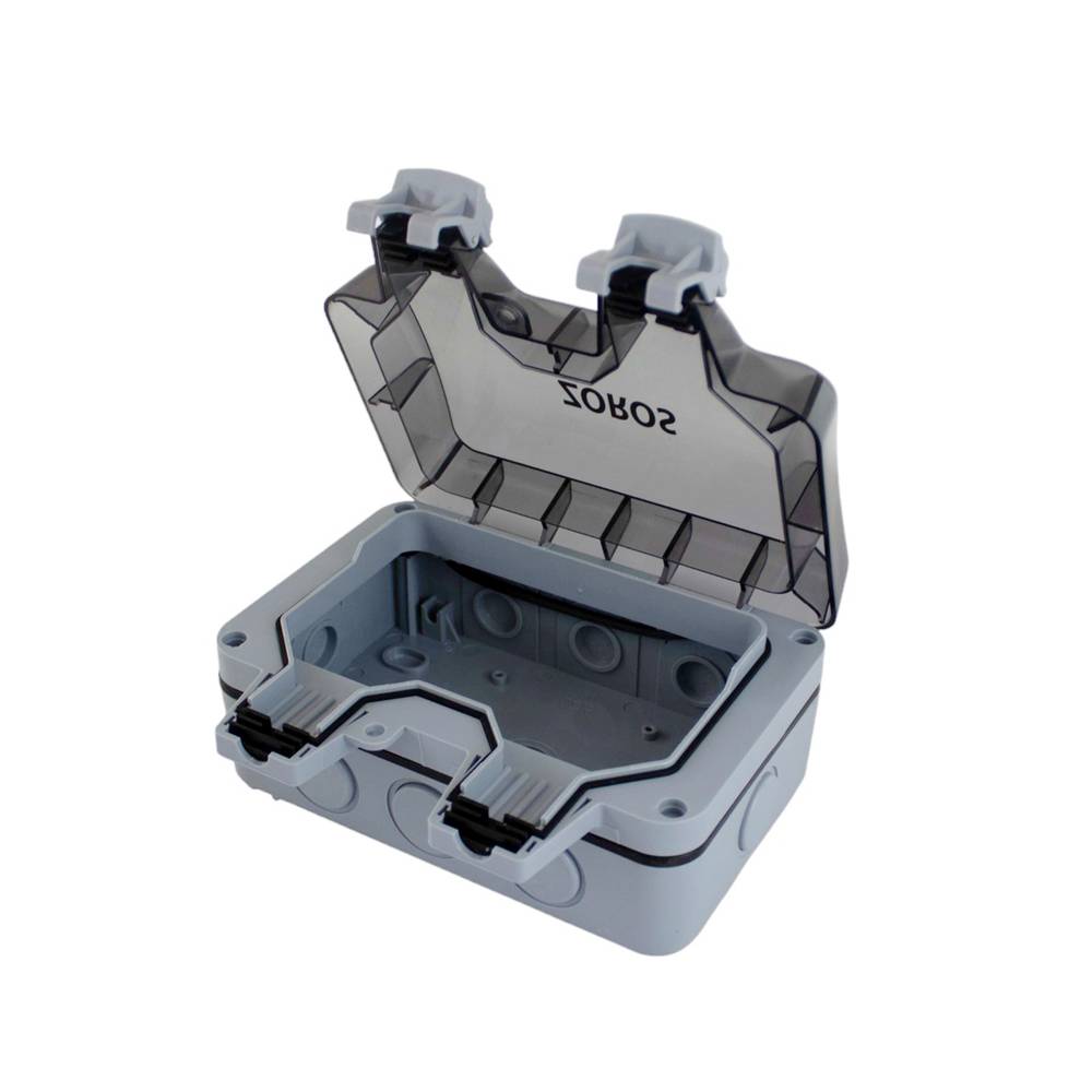 غطاء حماية أفياش مقاوم للعوامل الجوية من طراز 50004، مناسب لحماية نقاط التوصيل الكهربائية في الأماكن المكشوفة أو الرطبة. تصميم مدمج بابعاد 14×7 سم مع فتحة لفيش مفرد ومفتاح تيار، تباع العلبة دون فيش.