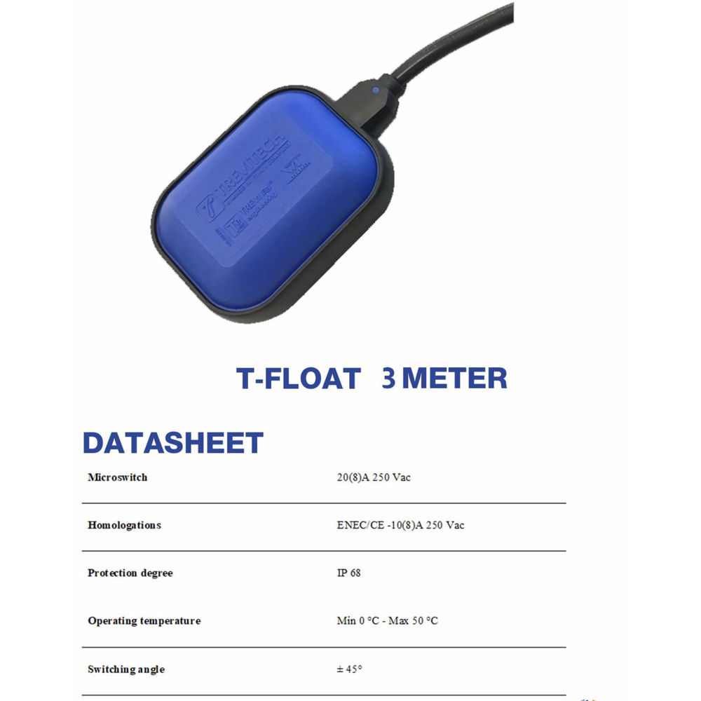 عوامة كهرباء WATERTECH بطول كابل 3 متر، تصميم إيطالي وجودة تصنيع عالية. منتج موثوق ومتين مناسب للاستخدامات المنزلية والصناعية الخفيفة، ويأتي مع ضمان لمدة ٣ سنوات.