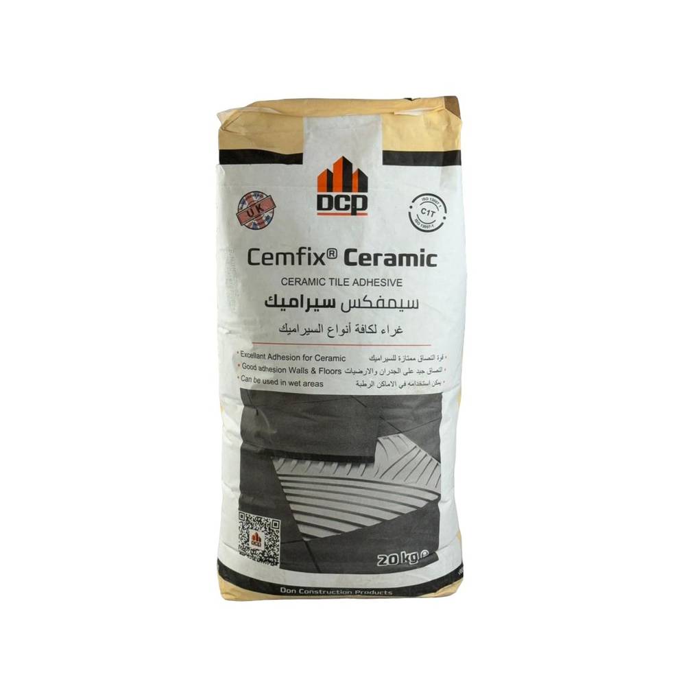 غراء سيراميك عالي الجودة من DCP، صناعة سعودية. لاصق قوي ومتعدد الاستخدامات مصمم لتثبيت البلاط والحجر بأنواعها على الجدران والأرضيات، مع مقاومة للرطوبة وملاءمة للمناطق الرطبة مثل الحمامات والمطابخ.
