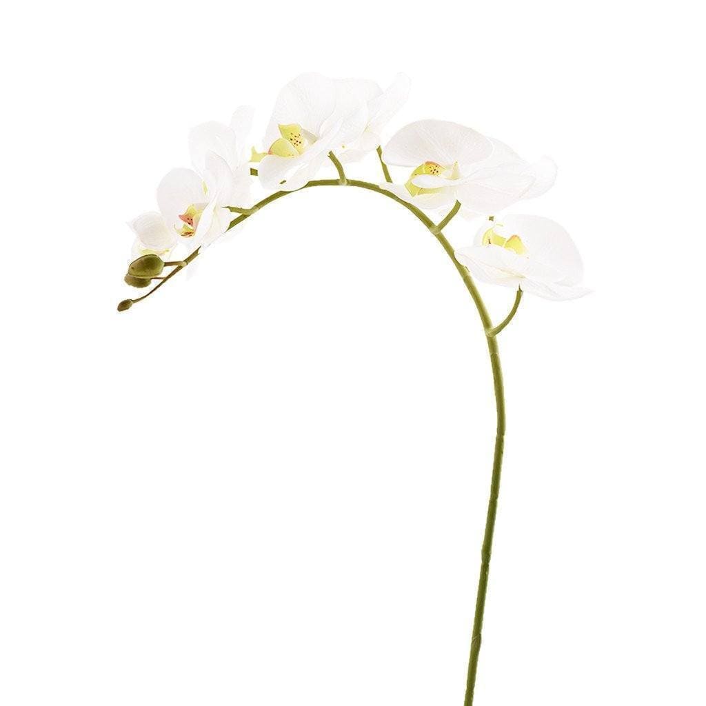 فرع أوركيد أنيق باللون الأبيض، بطول إجمالي 84 سم — قطعة بسيطة وجميلة لتزيين المساحات الداخلية وإضفاء طابع طبيعي رقيق.