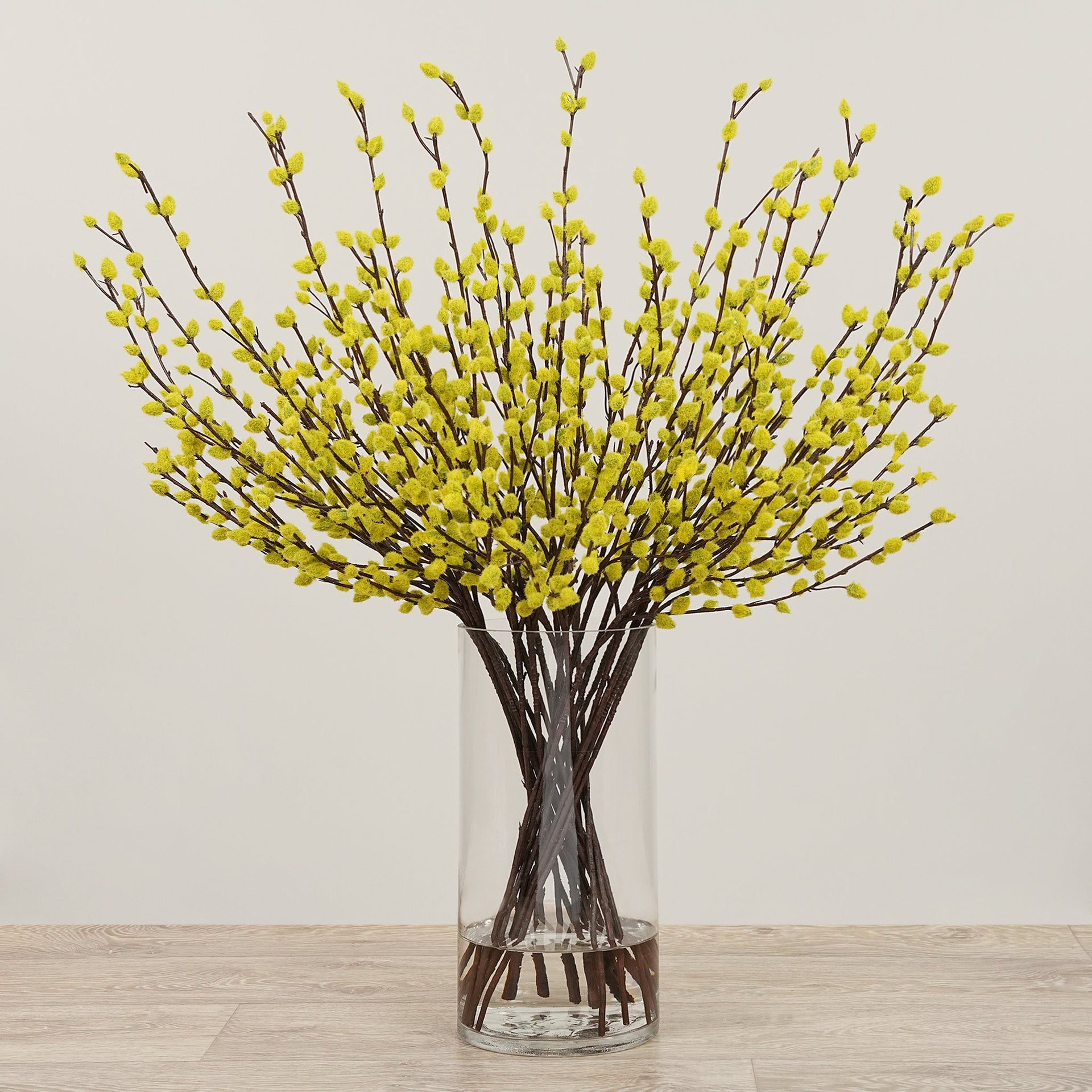 غصون صفصاف صناعي مرتبة في مزهرية زجاجية