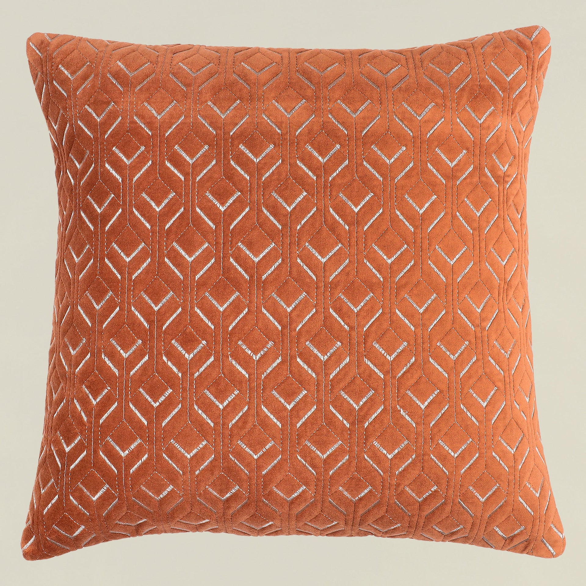 غطاء وسادة أنيق بلون سلمون، يجمع بين ملمس المخمل الفاخر والتطريز الدقيق لمظهر راقٍ ومريح.