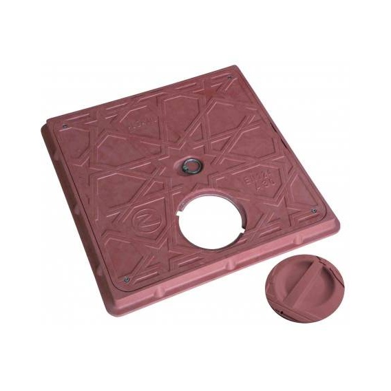 غطاء خزان مصنوع من مادة الكمبوزيت بلون أحمر غامق، بمقاس داخلي 70×70 ملم ومقاس خارجي 80×80 ملم من شركة الزامل. منتج مصمم ليجمع بين الخفة، المتانة ومقاومة العوامل الكيميائية والكهربائية مع مطابقة مواصفات EN124 لتحمّل الأحمال المتنوعة.
