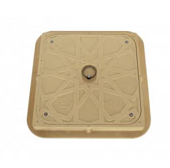 غطاء بلون بيج مصنوع من الكمبوزيت، مقاس داخلي 60×60 سم ومقاس خارجي 70×70 سم، قدرة تحميل تتراوح من 3 إلى 40 طن، وضمان منتج لمدة 5 سنوات (تطبق شروط وأحكام التركيب).