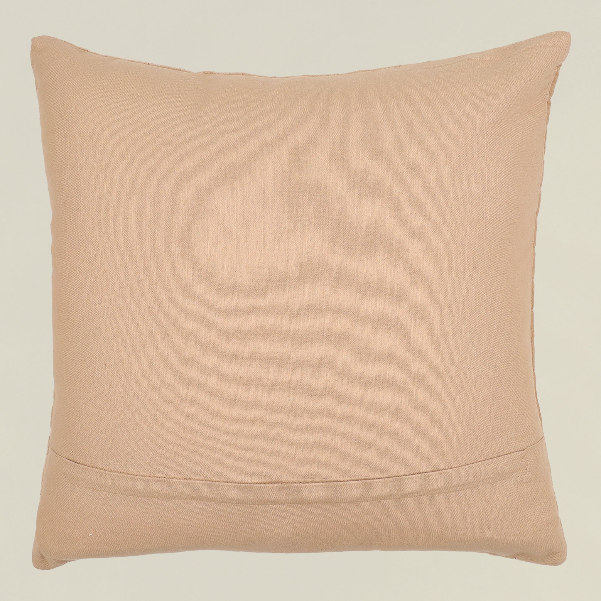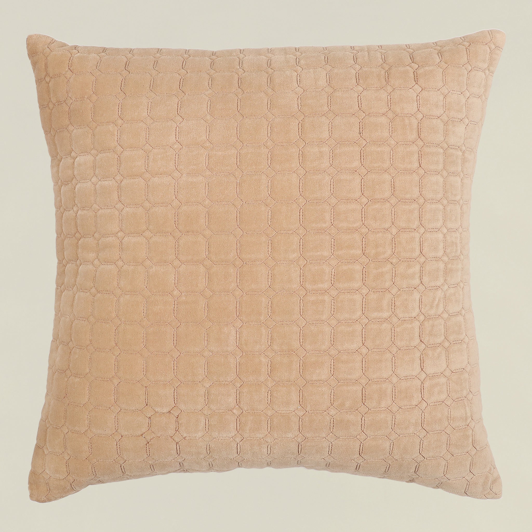 غطاء وسادة أنيق باللون الكراميل، مصنوع من قماش قطني مخملي مبطن ومطرز، مع واجهة أمامية مزودة بغطاء خلفي من قطن الشامبراي.