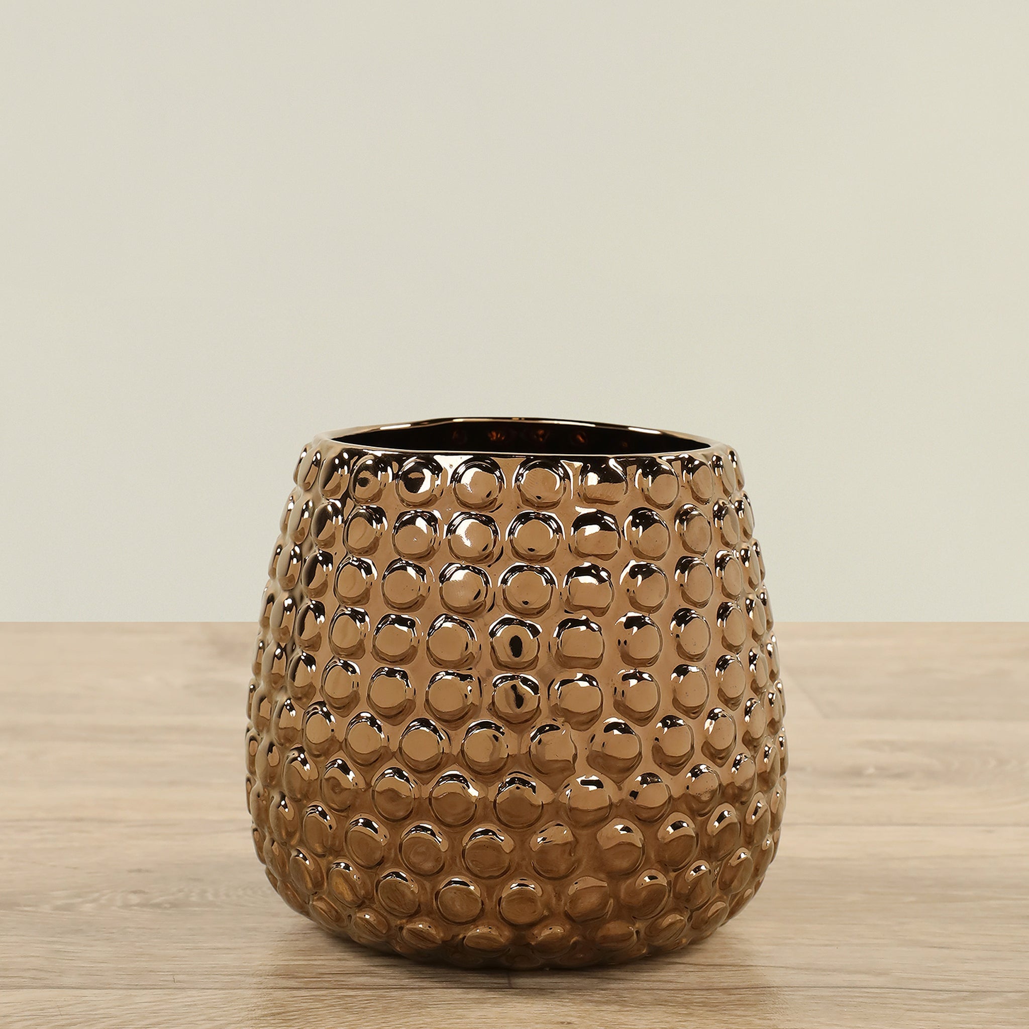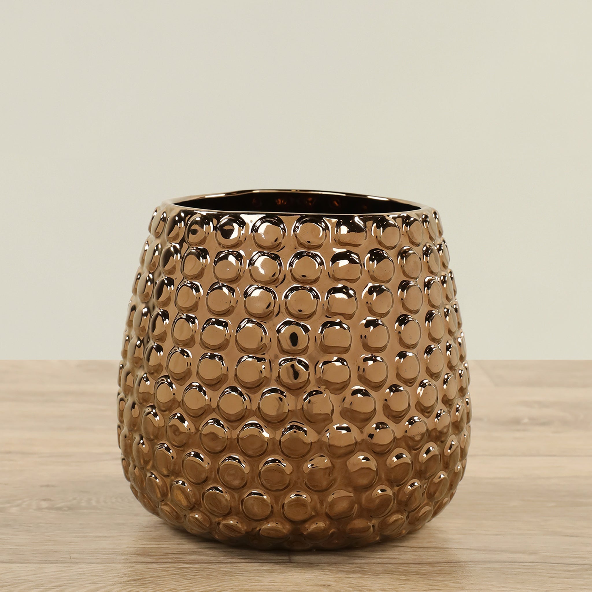 وصف قصير: مزهرية خزفية أنيقة باللون البرونزي، مناسبة لتزيين المنزل أو المكتب وإضافة لمسة جمالية دافئة.