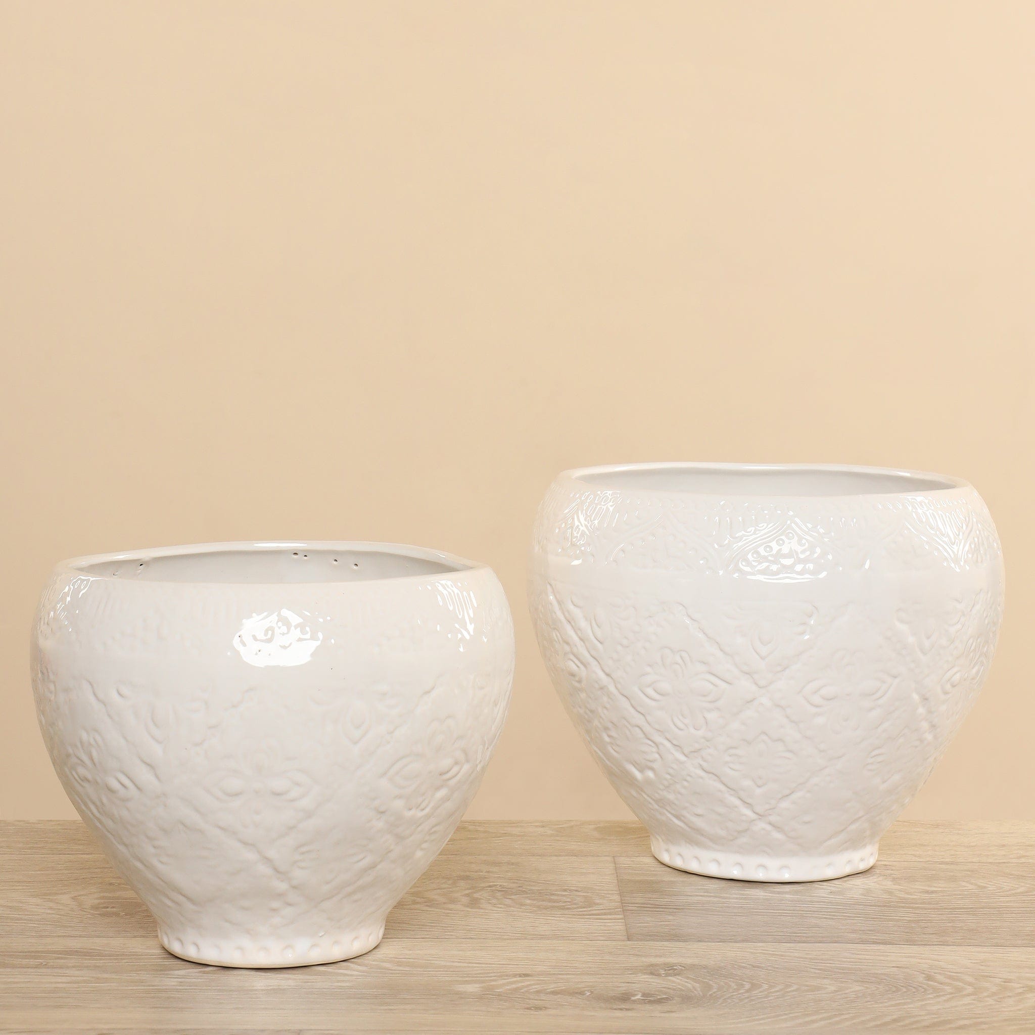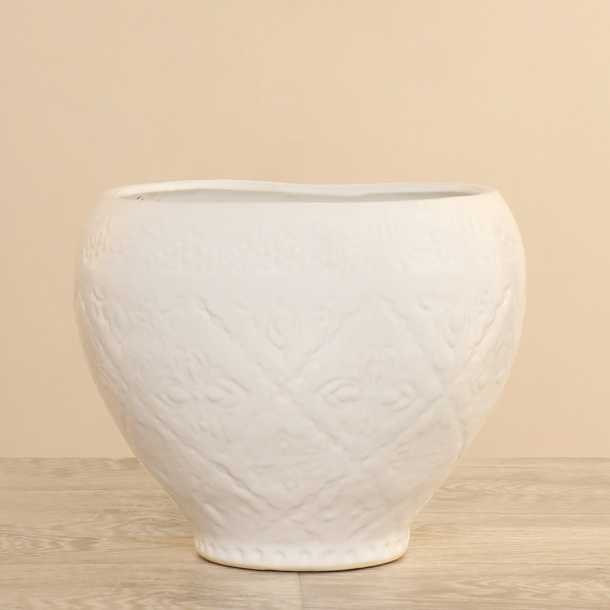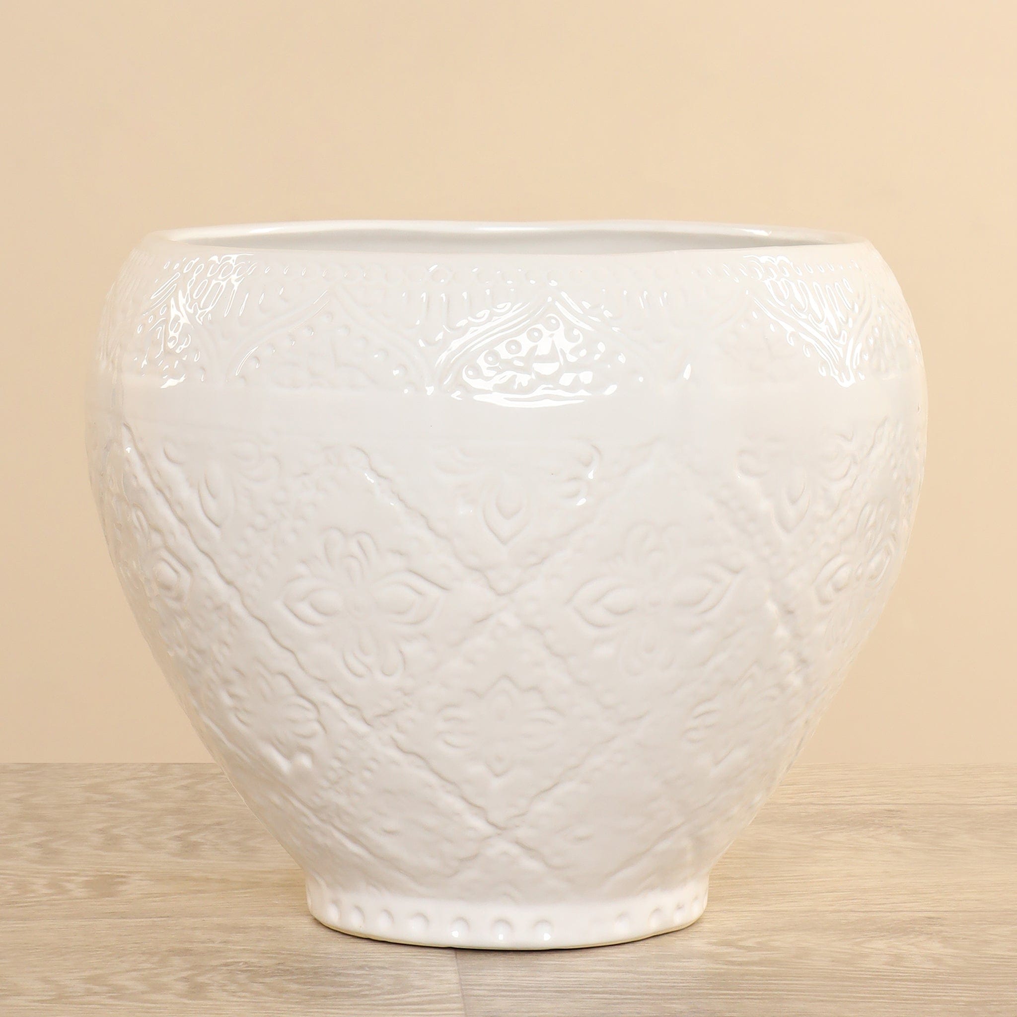 الوصف:مزهرية خزفية أنيقة باللون الأبيض، مناسبة لتزيين المنزل والمكاتب. تصميمها الكلاسيكي يجعلها ملائمة للزهور الطبيعية والصناعية، وسهلة التنظيف والصيانة.