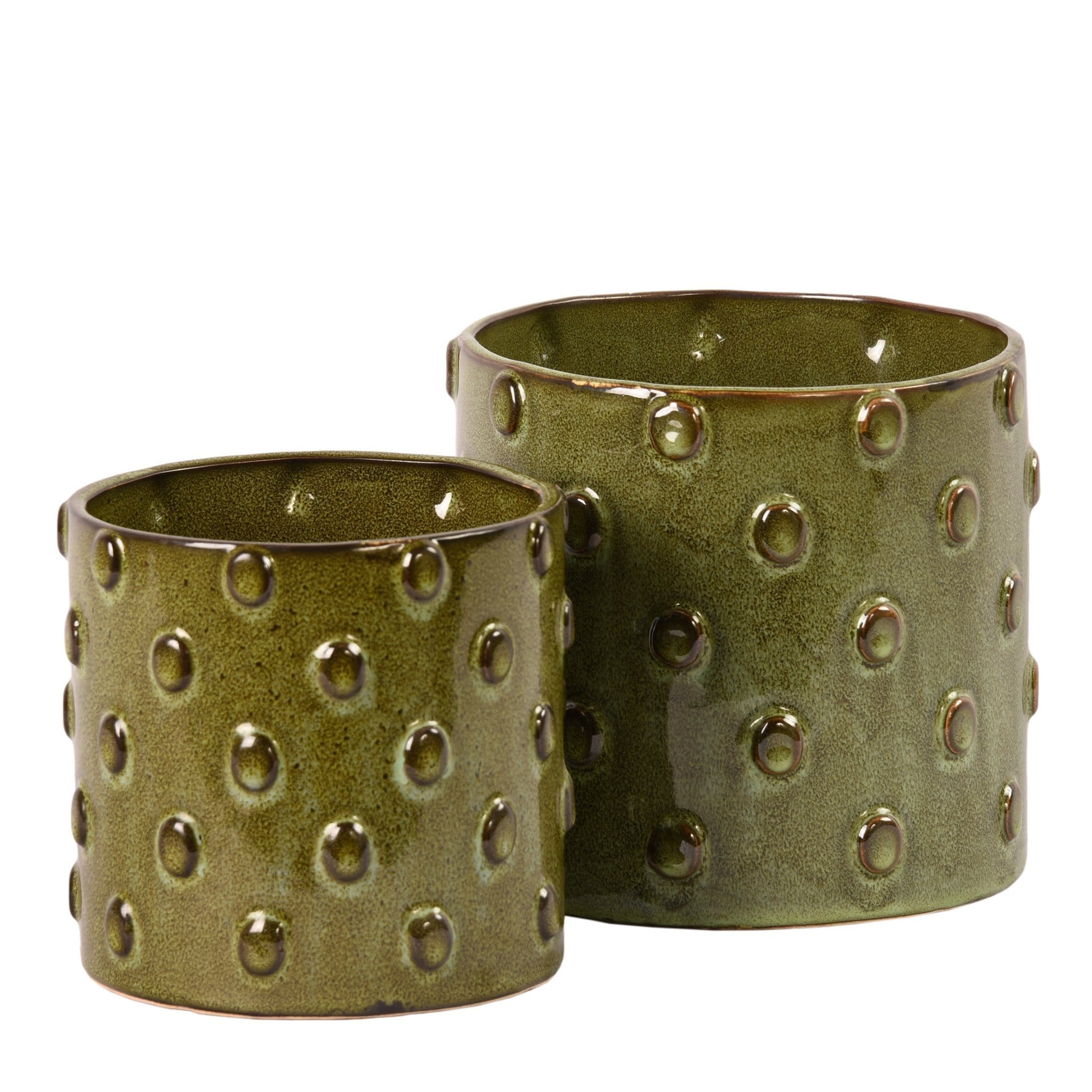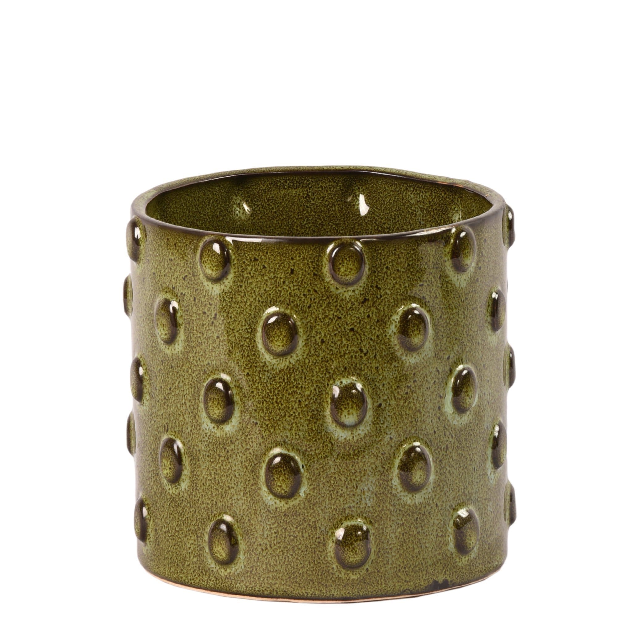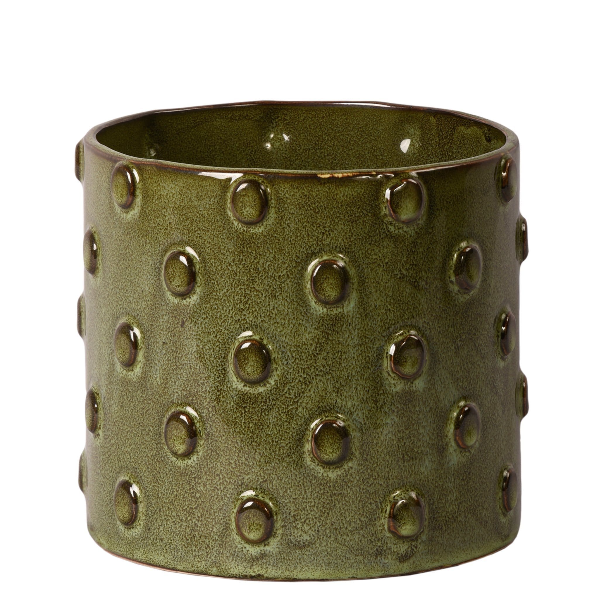 مزهرية خزفية أنيقة بطبقة طلاء أخضر مصقول تمنحها مظهرًا لامعًا ودافئًا ينسجم مع مختلف أنماط الديكور.