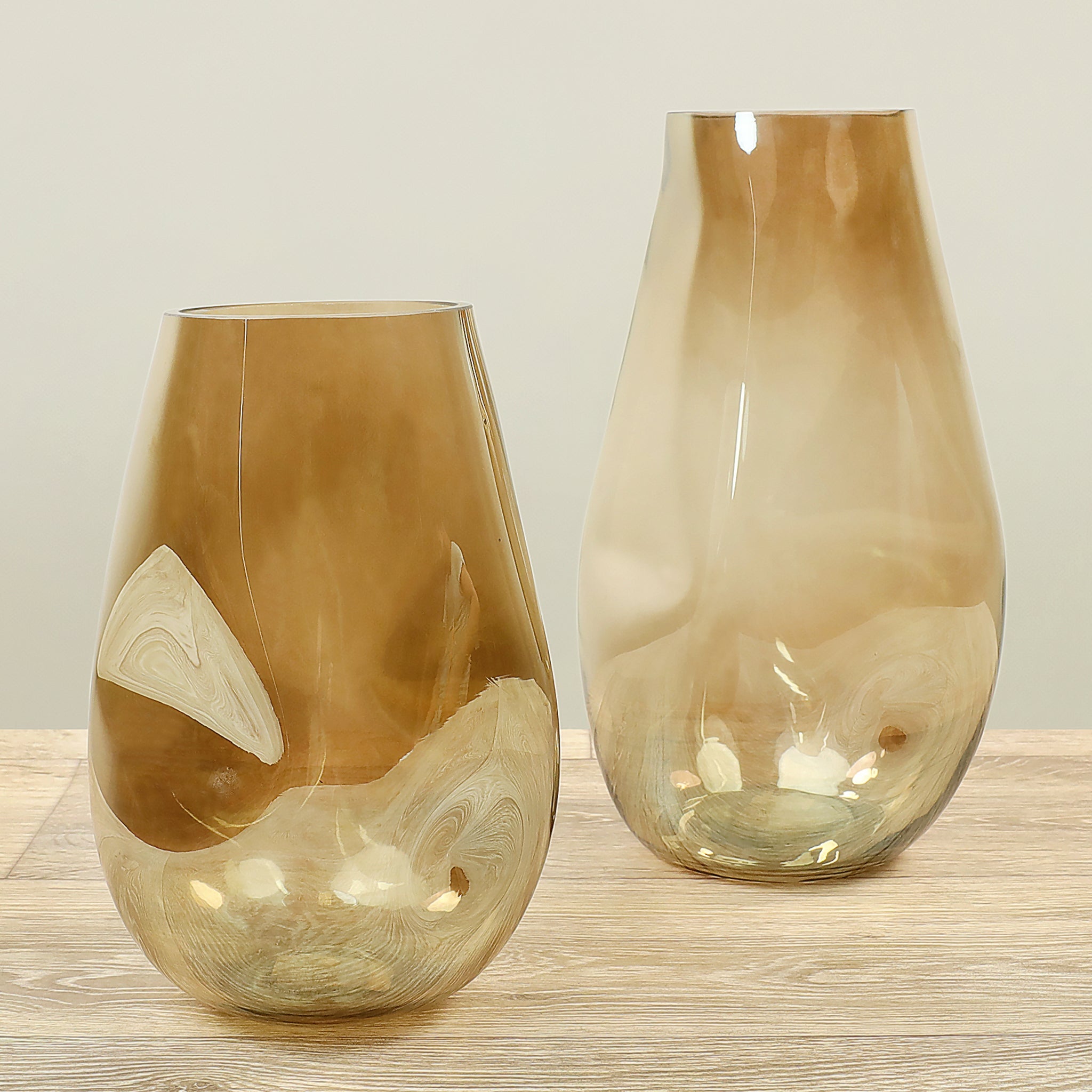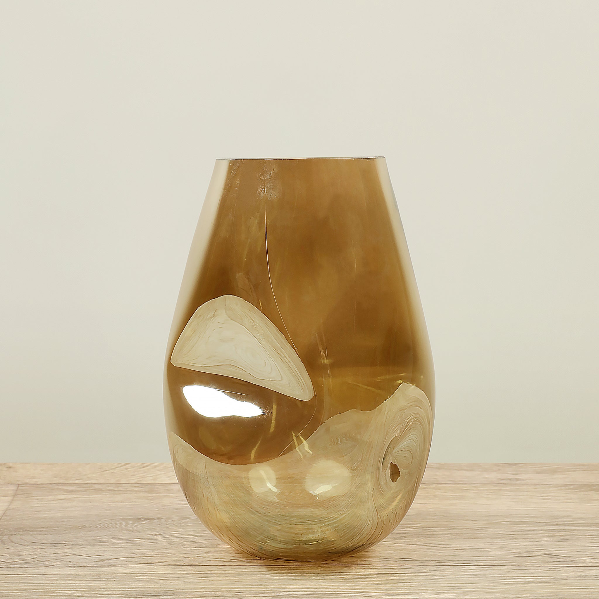 مزهرية زجاجية أنيقة بلون بني متوسط (بيرو)، تضيف لمسة دافئة وطبيعية لأي مساحة داخلية. تصميمها البسيط يجعلها مناسبة لأنماط الديكور العصرية والكلاسيكية على حد سواء.