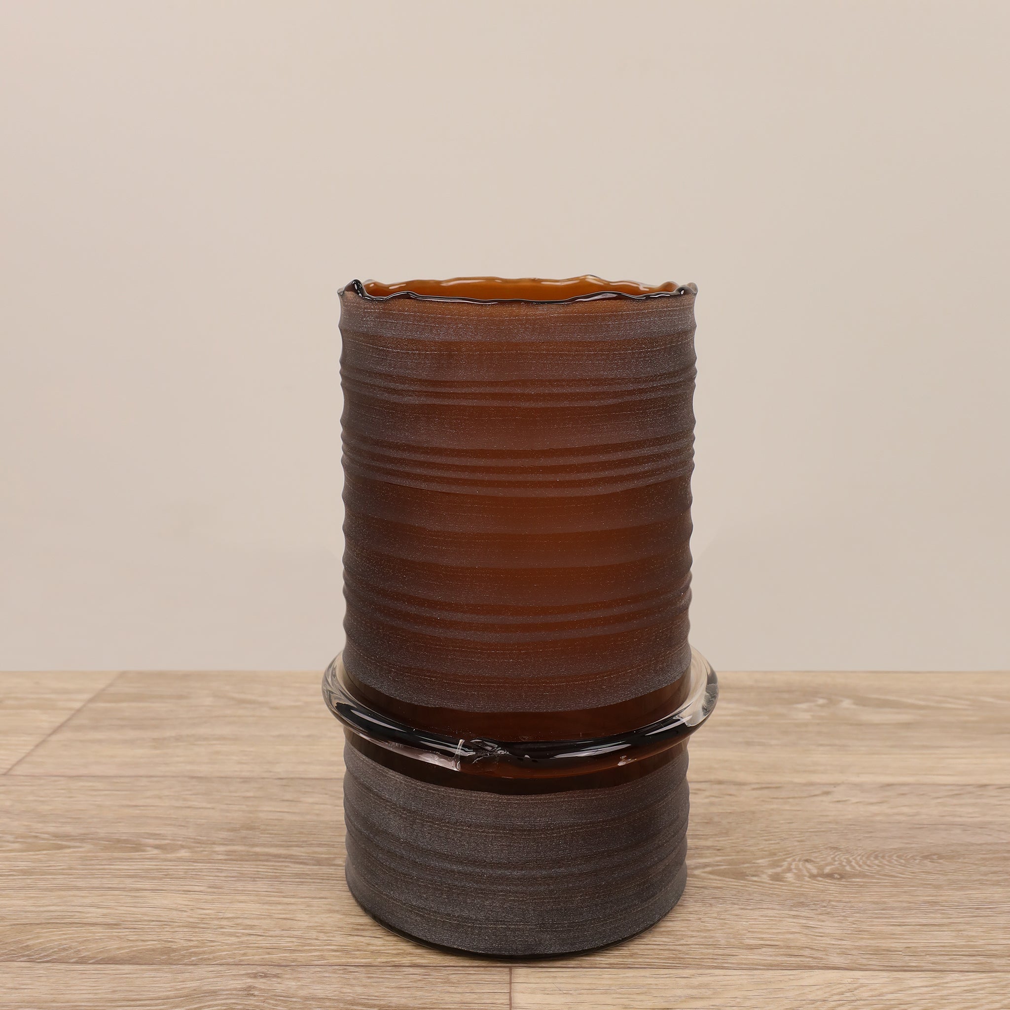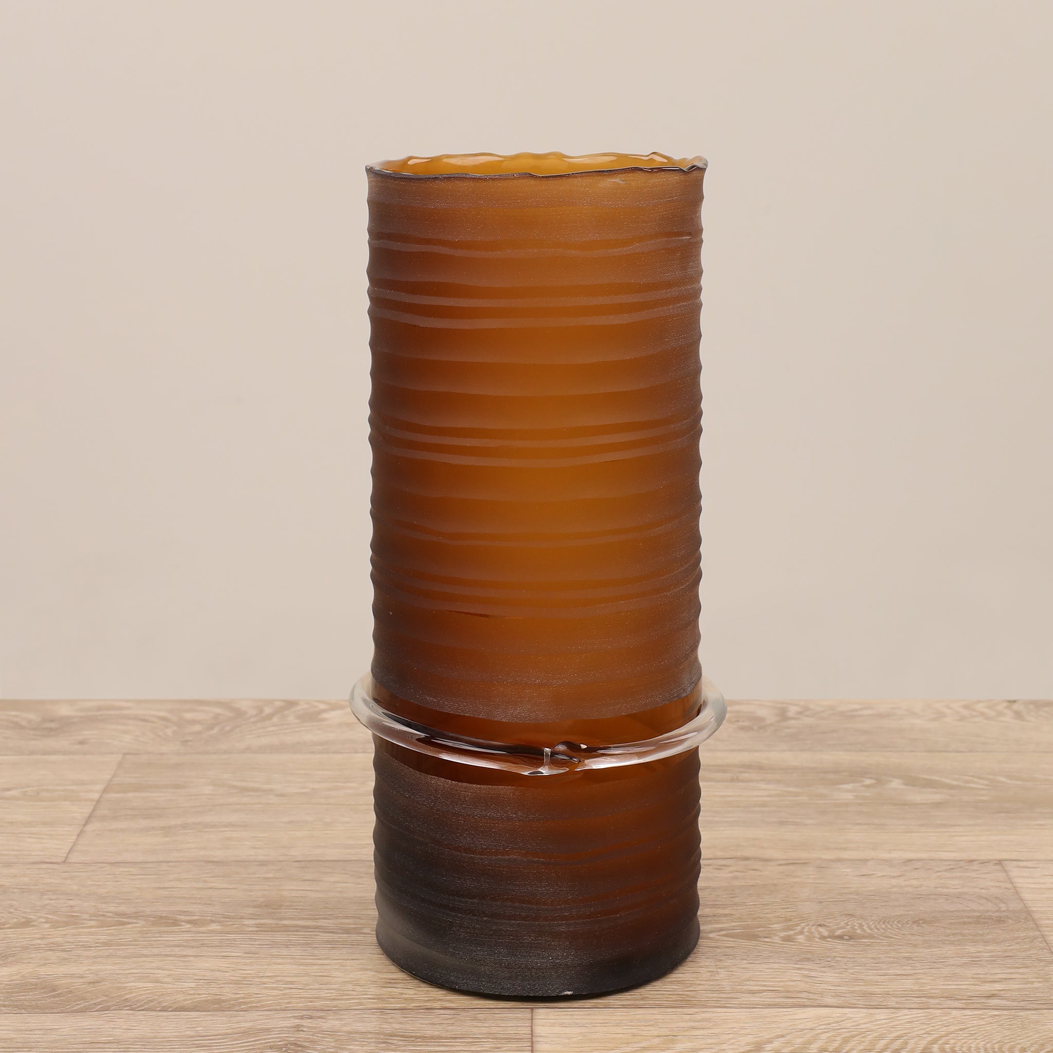 أضف لمسة من الرقي إلى منزلك مع هذه المزهرية الزجاجية الأنيقة. سطحها الأملس والشفاف يعكس الضوء برقة، ما يجعلها قطعة مركزية جذابة تضفي هدوءاً وسحرًا على أي مساحة.