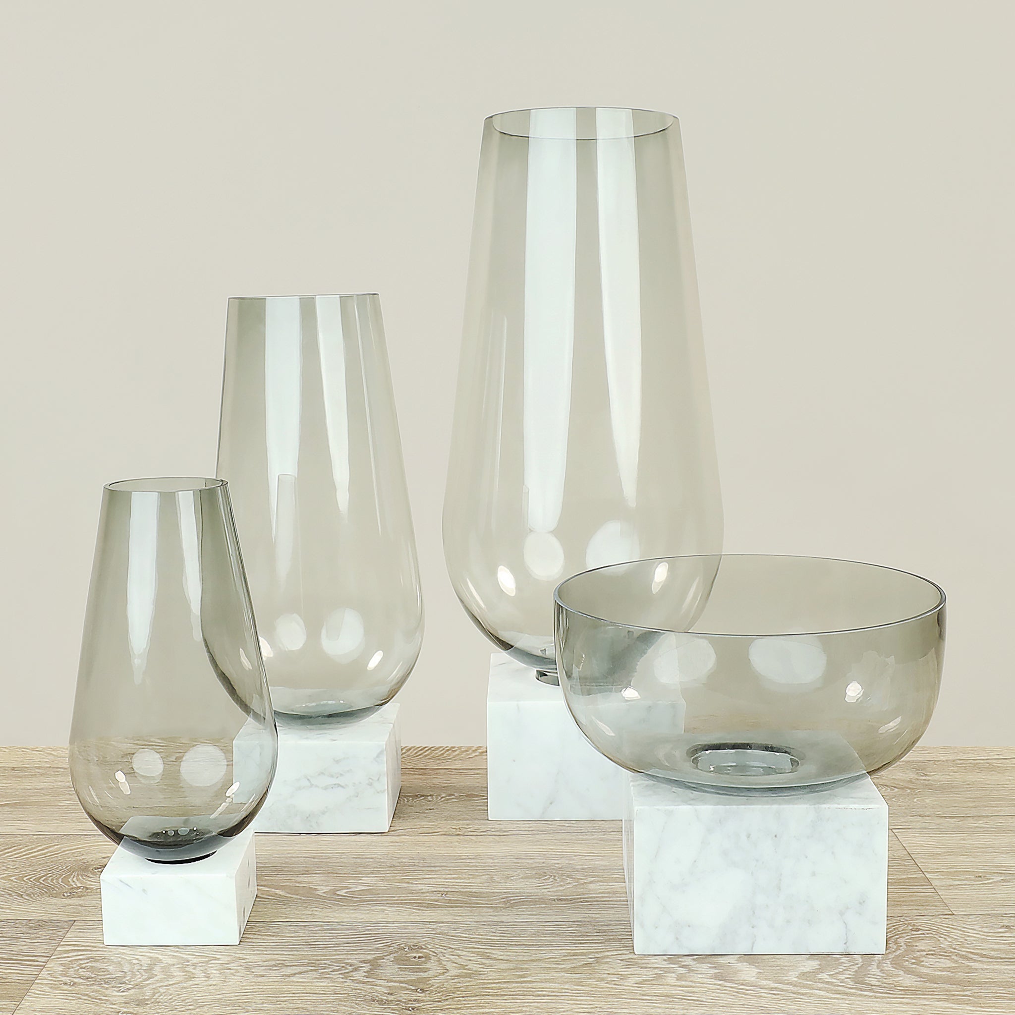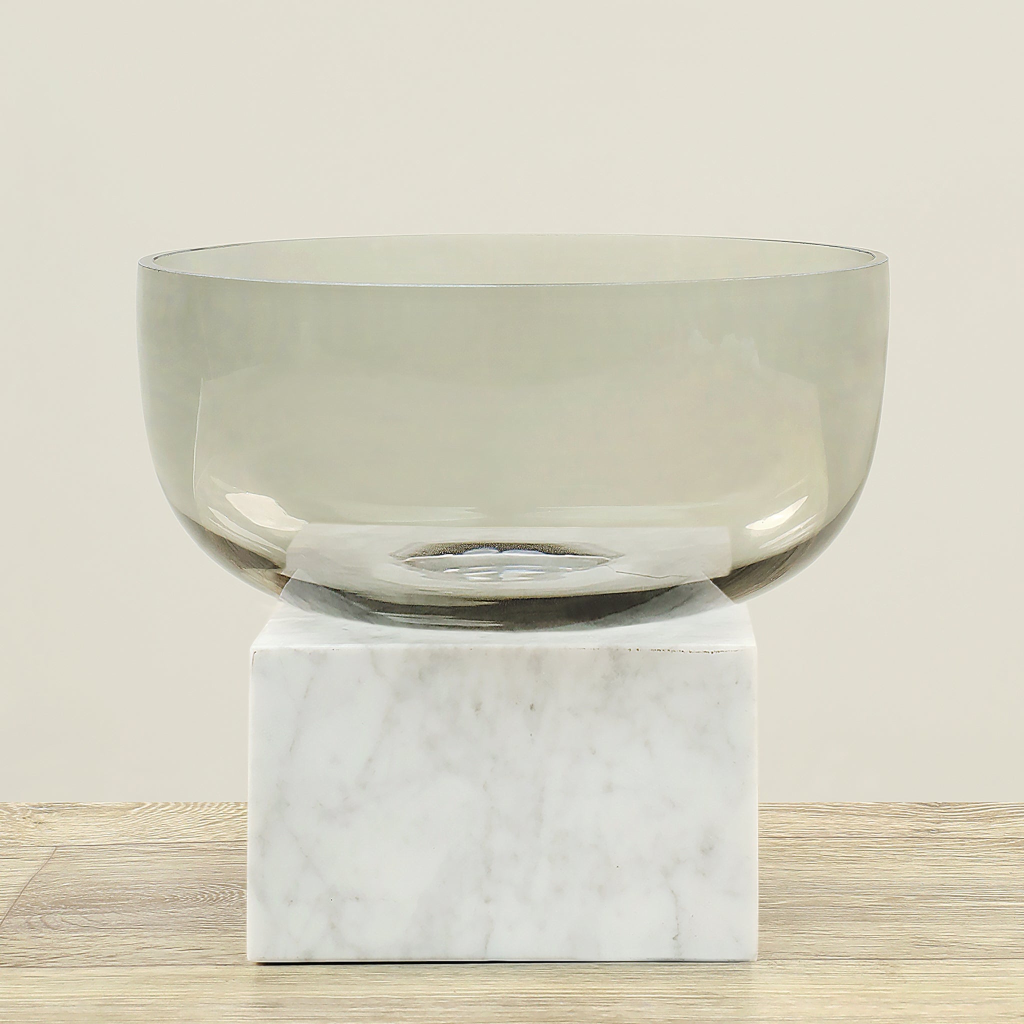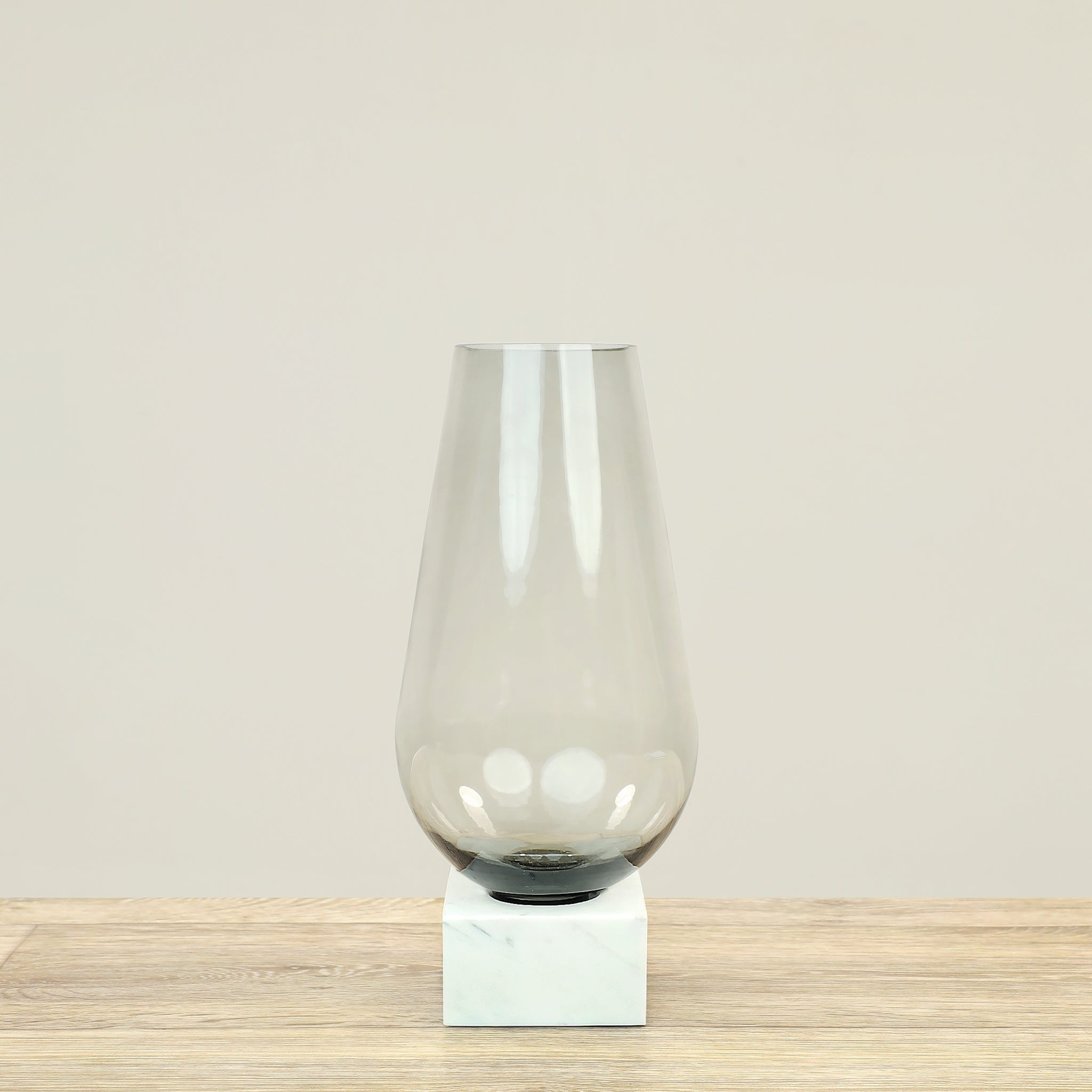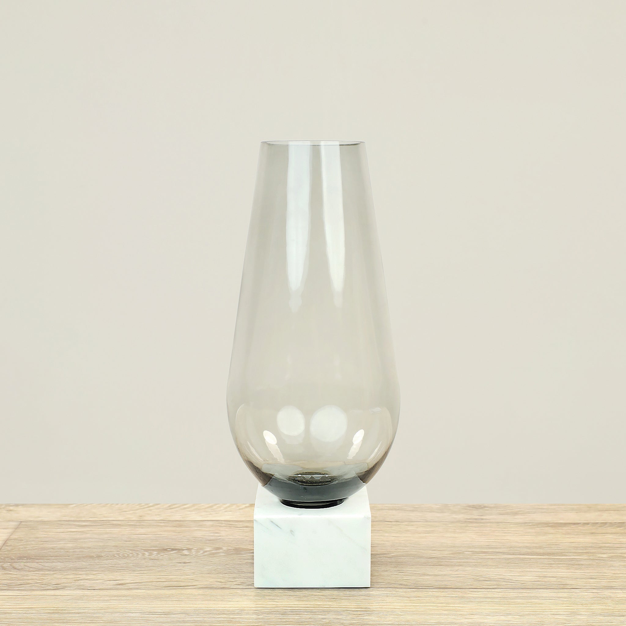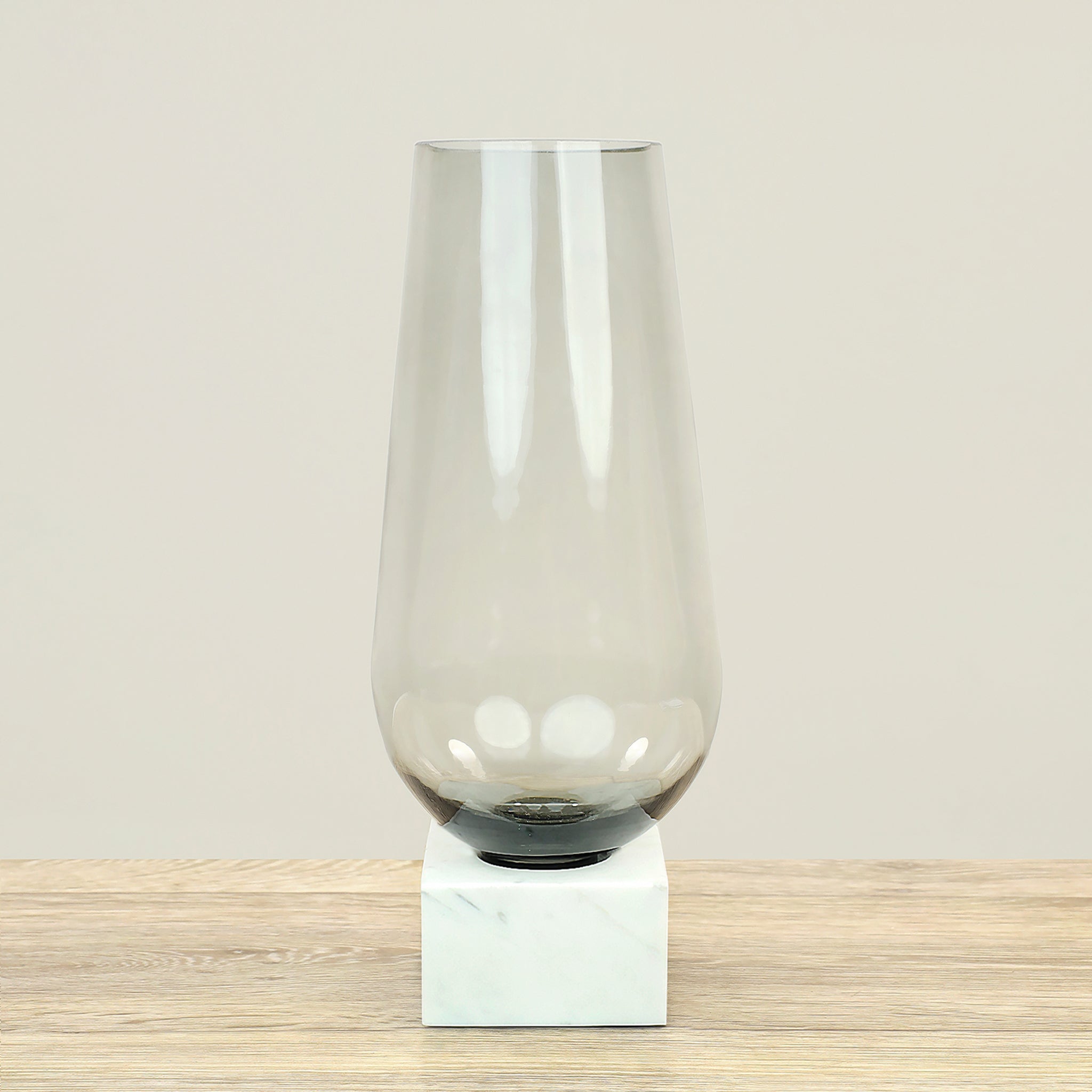 مزهرية أنيقة تجمع بين نقاء الزجاج ودِفء الرخام لتكون قطعة ديكور مميزة ترفع من فخامة أي مساحة داخلية.