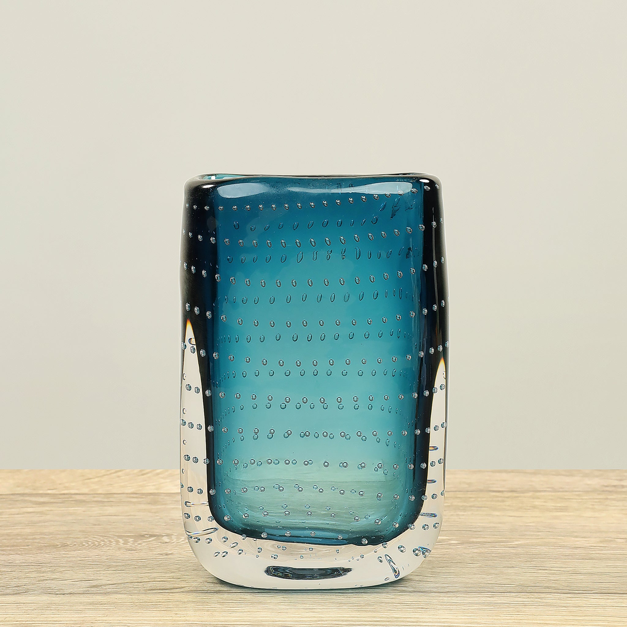 مزهرية زجاجية أنيقة بلون أزرق فولاذي، تضفي لمسة فاخرة وهادئة على أي زاوية في المنزل أو المكتب. تصميمها البسيط والعصري ينسجم مع الديكورات المختلفة ويبرز جمال الزهور سواء كانت طبيعية أو صناعية.