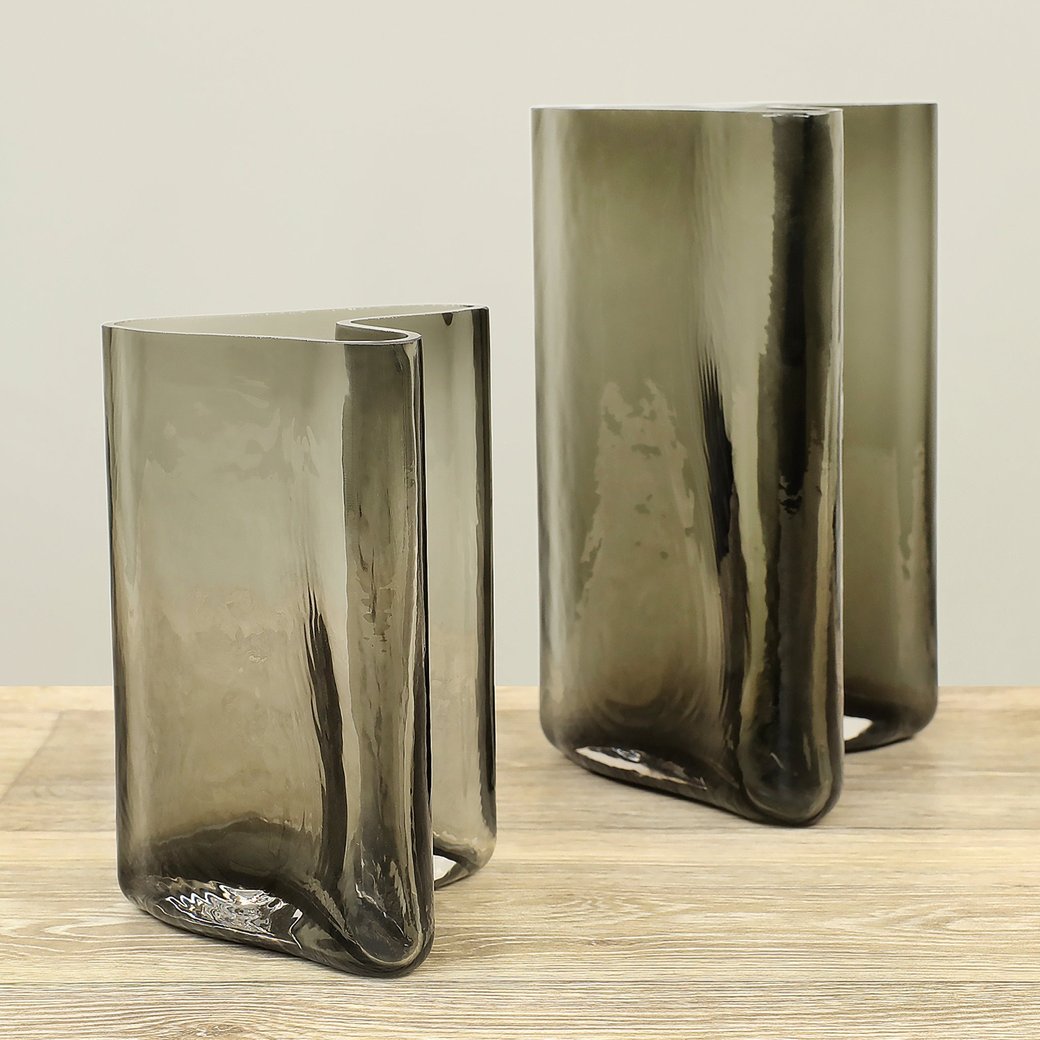 زهرية زجاجية أنيقة بلون رمادي أردوازي فاتح، تضيف لمسة هادئة وعصرية إلى أي مساحة داخلية. تصميمها البسيط يناسب تنسيقات ديكور متعددة ويمكن استخدامها مع الزهور الطبيعية أو الصناعية.