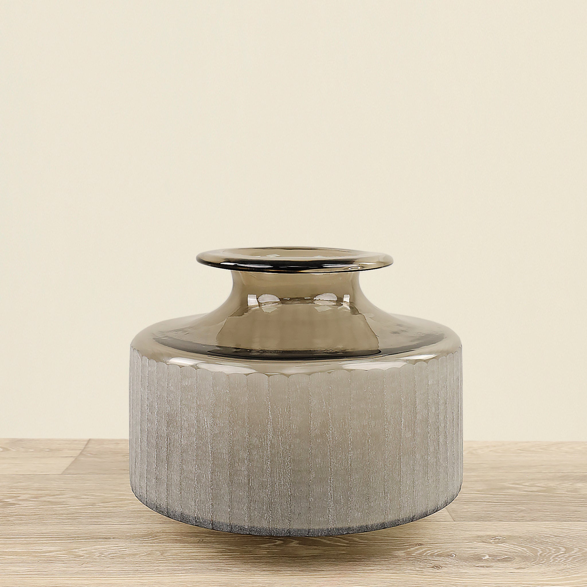 مزهرية أنيقة مصنوعة من الزجاج الشفاف تعطي لمسة من البساطة والرقي لأي مكان في المنزل أو المكتب. تصميمها الكلاسيكي يبرز جمال الأزهار ويضيف لمسة ديكور هادئة ومتناسقة.