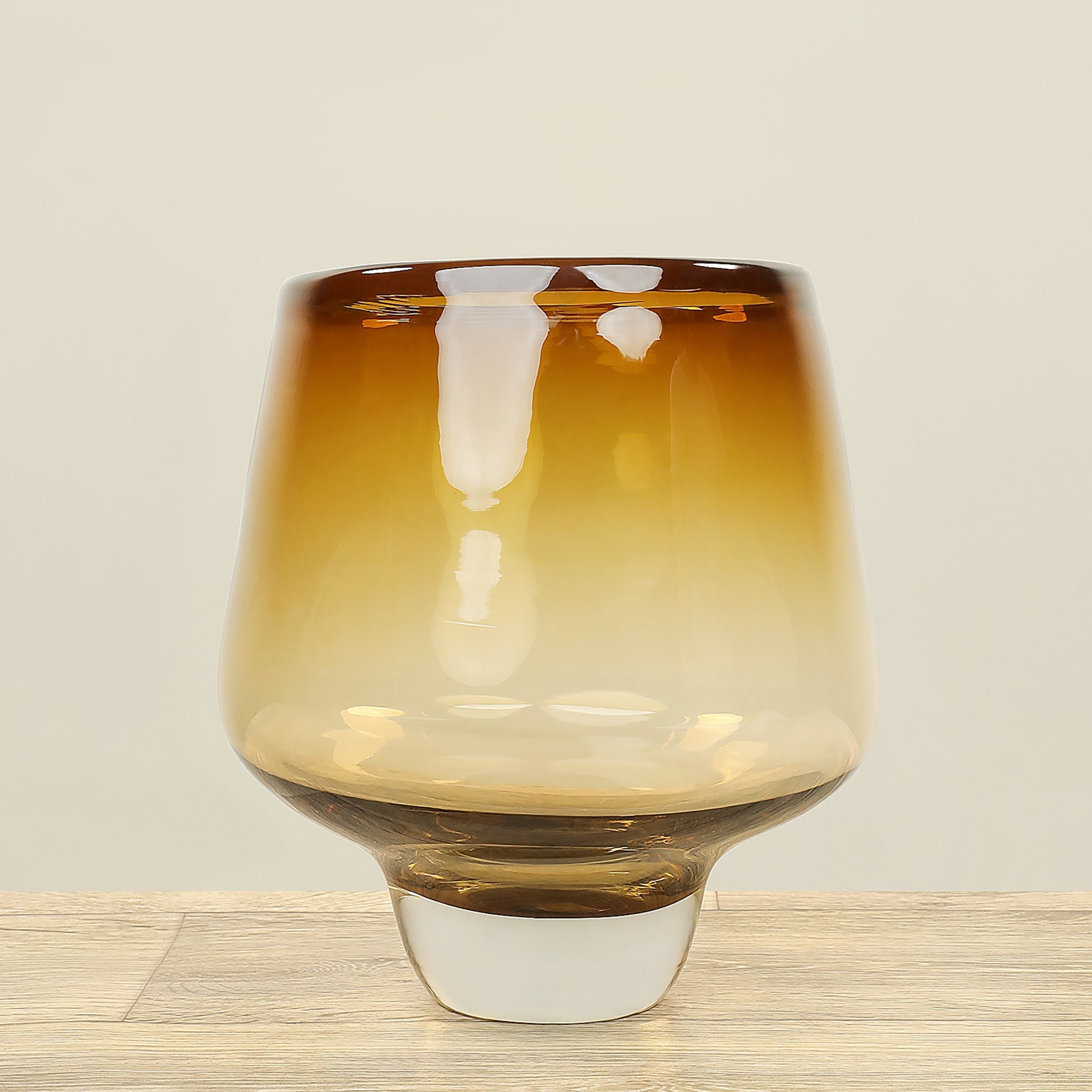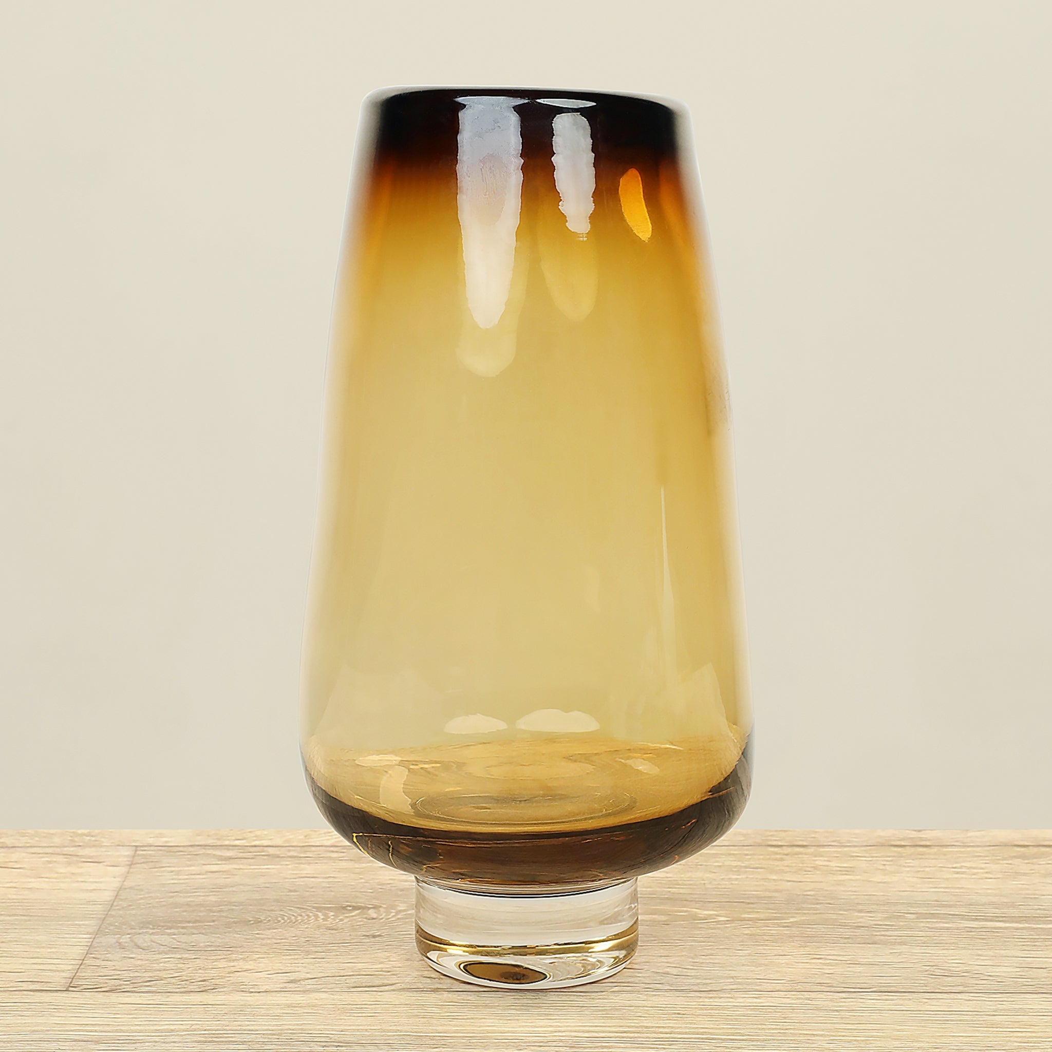 مزهرية زجاجية أنيقة باللون الأصفر تضيف دفءًا ولمسة لونية مبهجة إلى أي مكان في المنزل أو المكتب. مناسبة لتنظيم باقات الزهور الطازجة أو لاستخدامها كقطعة ديكور مستقلة.