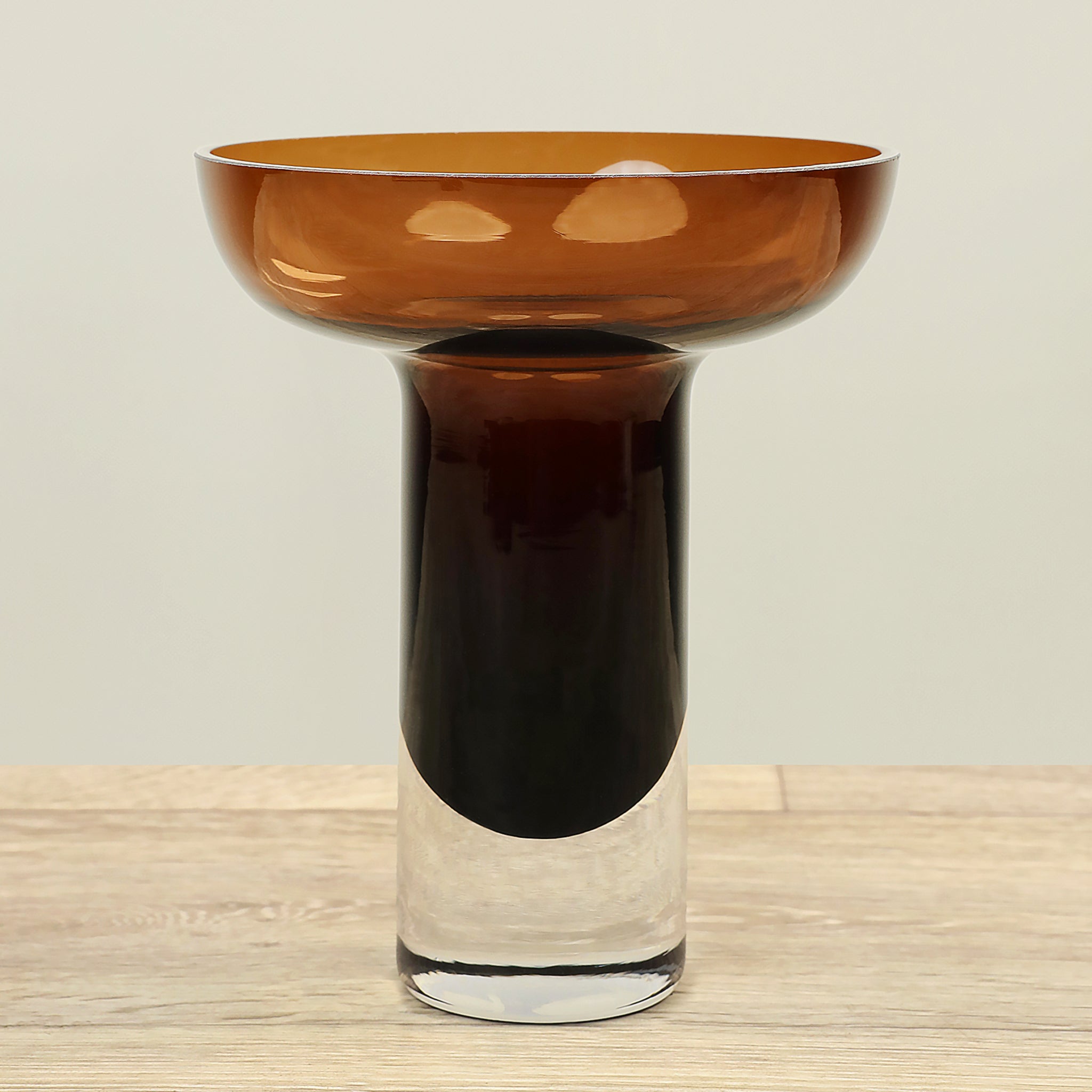 مزهرية زجاجية أنيقة بلون برتقالي غامق تضيف لمسة دفء وحيوية إلى أي مساحة داخلية.